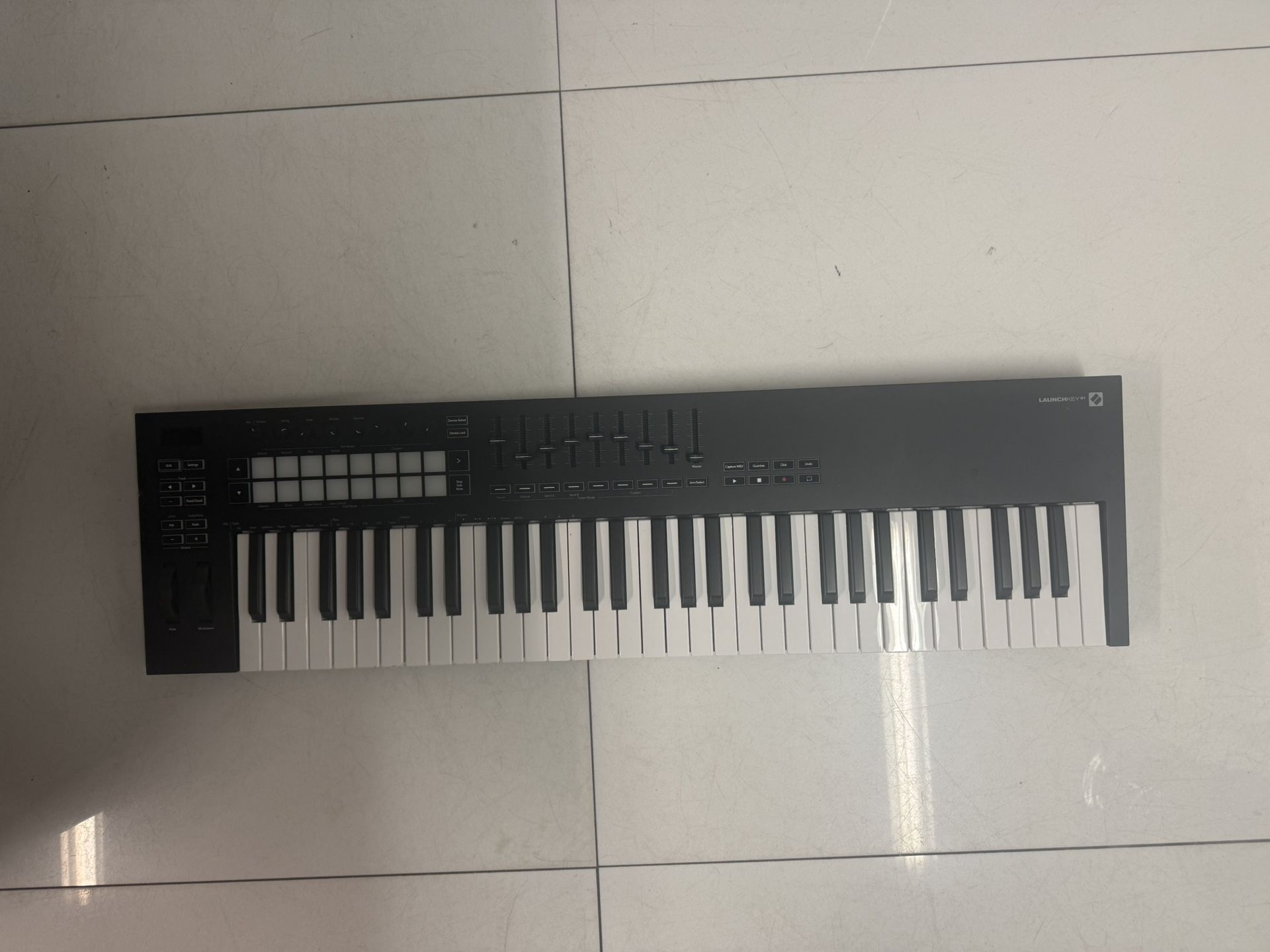 IT HASN’T BEEN TESTED - YOU CAN PURCHASE IT AND TEST IT AND IF IT DOESN’T WORK YOU CAN RETURN IT THE NEXT DAY AND I’LL RETURN YOUR MONEY THIS IS A MIDI CONTROLLER KEYBOARD WITH 61 VELOCITY-SENSITIVE KEYS, 16 PADS AND NINE 45mm FADERS, WHICH PROVIDE EXPRESSIVE CONTROL. SOFTWARE COMPATIBILITY: WORKS WITH ABLETON LIVE 10 OR LATER. FULL INTEGRATION WITH LOGIC AND REASON, PLUS OUT OF THE BOX FUNCTIONALITY WITH OTHER DAWs INCLUDING STUDIO ONE, CUBASE AND PRO TOOLS, VIA HUI. LAUNCHKEY ALSO WORKS AS A STANDARD MIDI CONTROLLER. POWER REQUIREMENTS: USB BUS POWERED, POWER SUPPLY NOT INCLUDED. DIMENSIONS: 952mm WIDTH x 258mm DEPTH x 77mm HEIGHT (62mm EXCLUDING POTS)