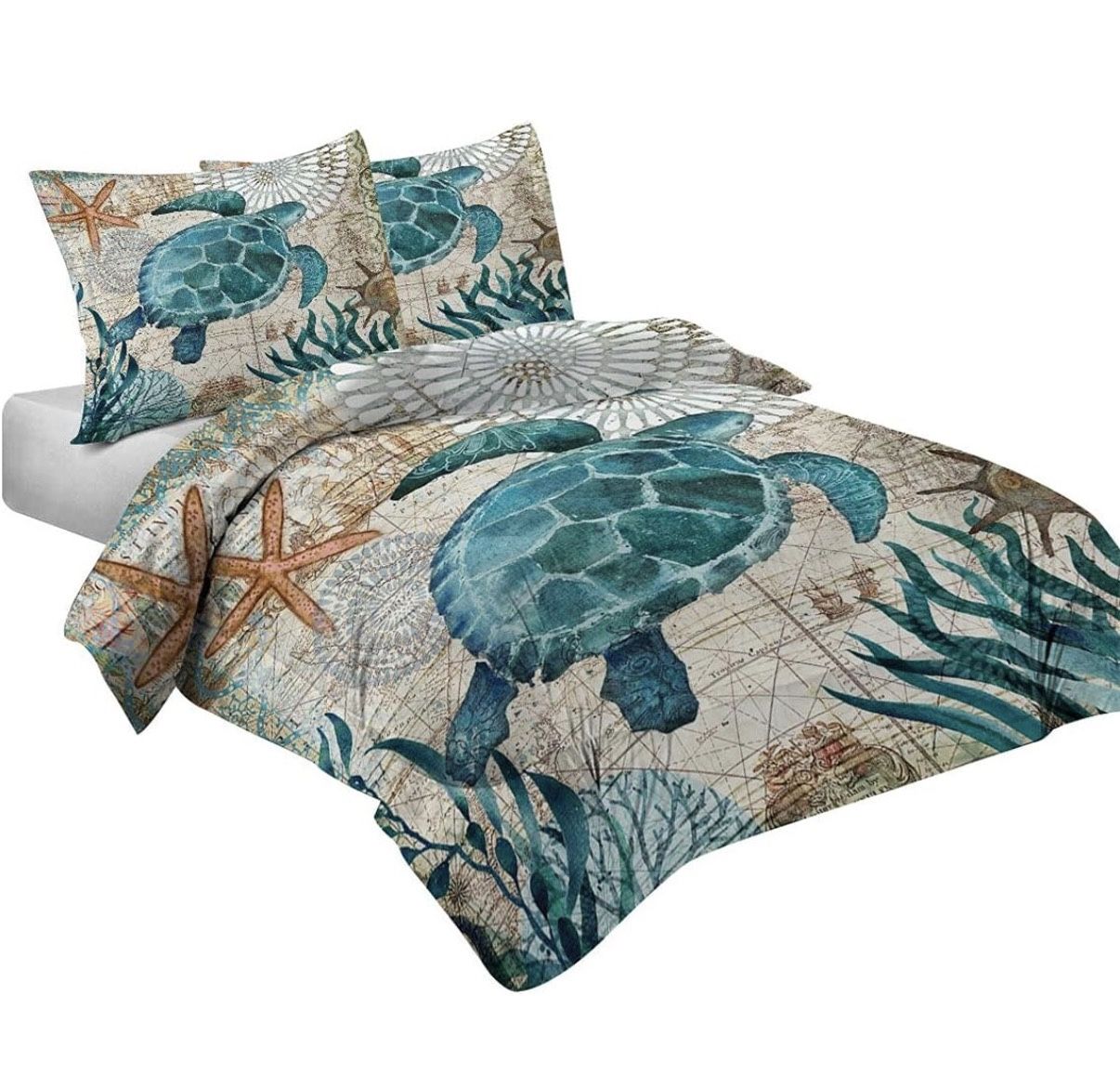 Twin sized sea turtle pattern comforter, fitted sheet, and two pillow cases - soft and cozy!