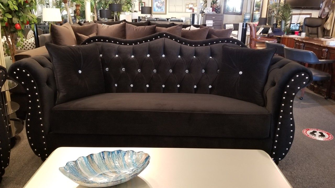 Brand New 98" Black Or Blue Modern Tufted Velvet Sofa With Faux Crystals