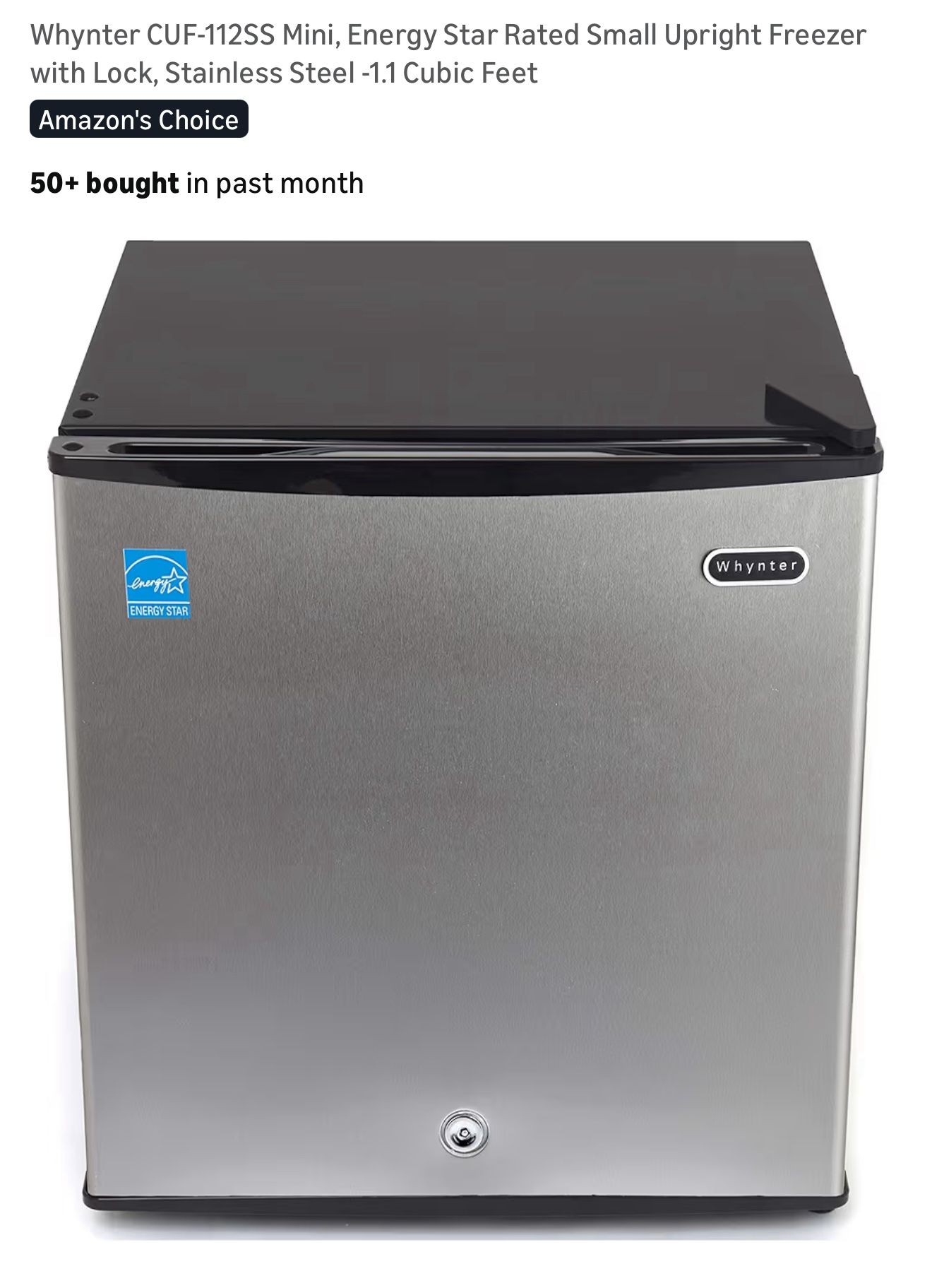Selling my Whynter CUF-112SS Upright Mini Freezer in like-new condition. No dentsor issues at all. Super clean and freezes extremely cold. • 1.1 cu ft capacity • Energy-efficient • Stainless steel front • Comes with working lock + key • Perfect for dorms, apartments, or extra frozen storage • Retails for $250+ on Amazon Only selling because I now have a full-size fridge/freezer and no longer need a personal one.