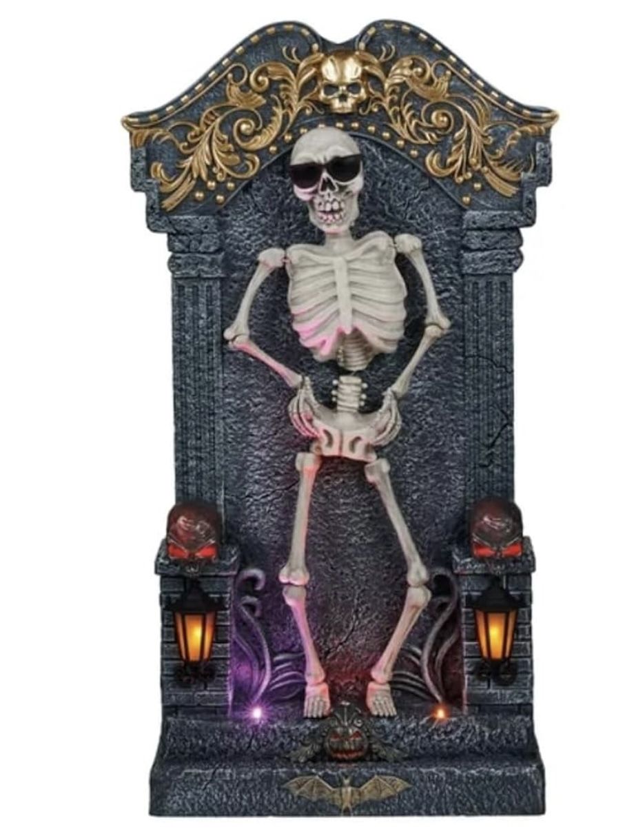 Animated Skeleton Tombstone with Lights and Music Halloween Decor New