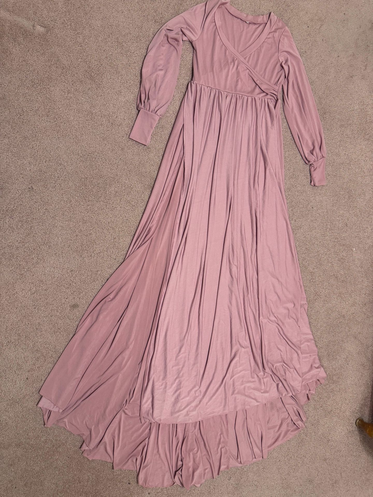 New large rose pink long stretchy Flowy dress maternity photo gown blush S