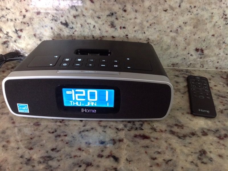 I home system lets you play music from your I-phone plus am/fm radio with alarm clock