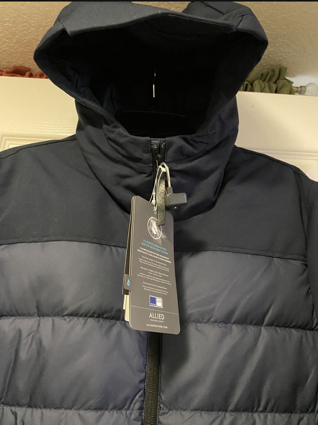 Adidas Climawarm Down Jacket coat Mens 600 Fill Hooded Water Resistant Color Blue Size MEDIUM… Brand New w/ Tag...