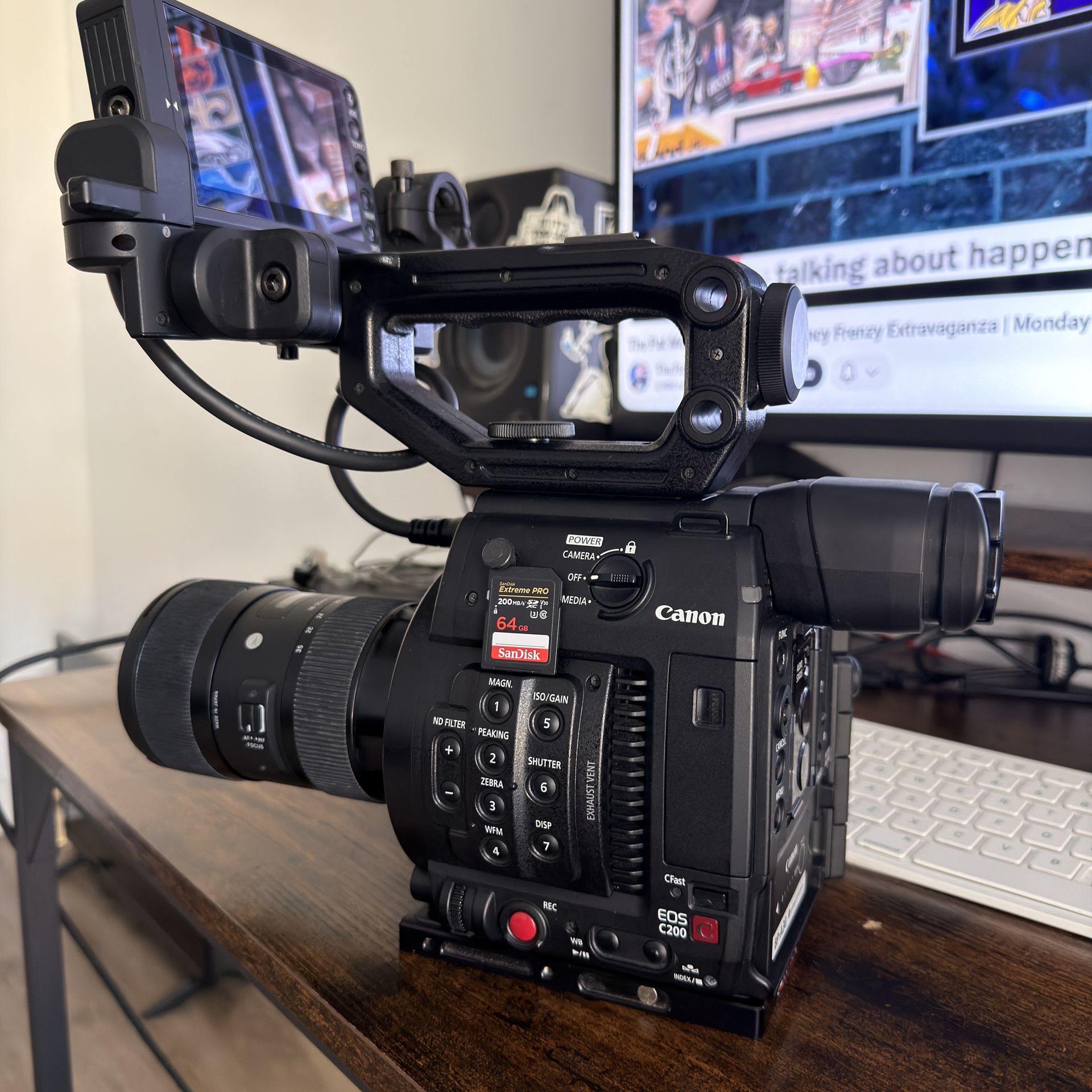 1200 camera only 400 Lens and memory cards (worth 650) Professional camera for: MUSIC VIDEOS COMMERCIAL WORK FILMS DOCUMENTARY HIGH END CLIENTS Incredible condition All original accessories included all fully working in prefect order BP-A30 battery Dual slot charger 4 inch LM-V1monitor/Cable and mount Canon Side Grip (record button and iris control) Neck Strap Top handle Extras : “I purchased separately “ Lens SIGMA 18-35mm F1.8 3 memory cards 2x CFAST 128GB 1x SDXC SANDISK 64GB MEMORY CARD DUAL READER Shape base plate for shoulder mount and tripod Smallrig Plate to relocate grip if you want to