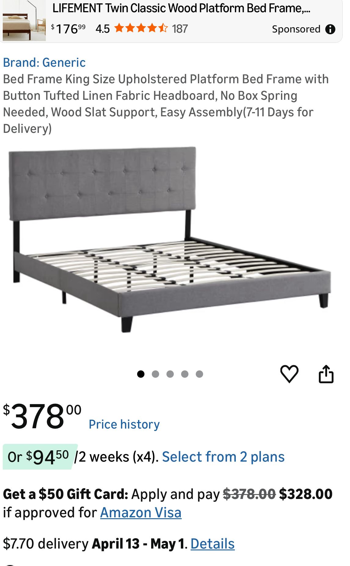 Brand new in the box,Bed Frame King Size Upholstered Platform Bed Frame with Button Tufted Linen Fabric Headboard, No Box Spring Needed, Wood Slat Support, Easy Assembly