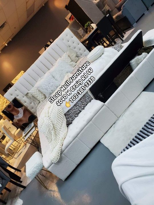 Brand new King storage bed frame ๐๐$898 ๐NOW! (Originally $1200) Ivory white Available in Queen ๐โโ๏ธ๐SLEEP WELL FURNITURE 4040 W CRAIG RD LAS VEGAS Open 10-7pm Hablamos Espaรฑol ๐We offer Financing๐ฒ Take home it Home ๐$50 DOWN No credit required, Zero interest up to 120 days Select from Koalofi, Acima, Kornerstone, Kafene finance. Furniture Sectional Sofa Queen King Mattress Bedroom Bunk beds Dining table sets