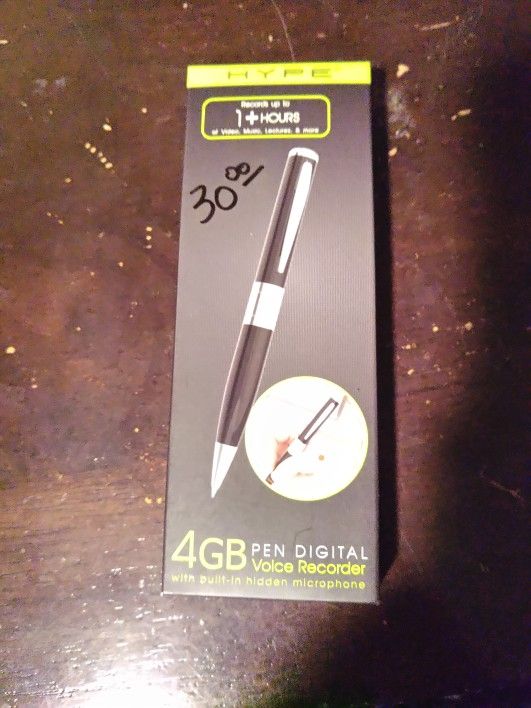 New Hype 4GB Pen Digital Voice Recorder that sells for over 65.00 online.. Delivery available for a fee.. Make me a reasonable offer..