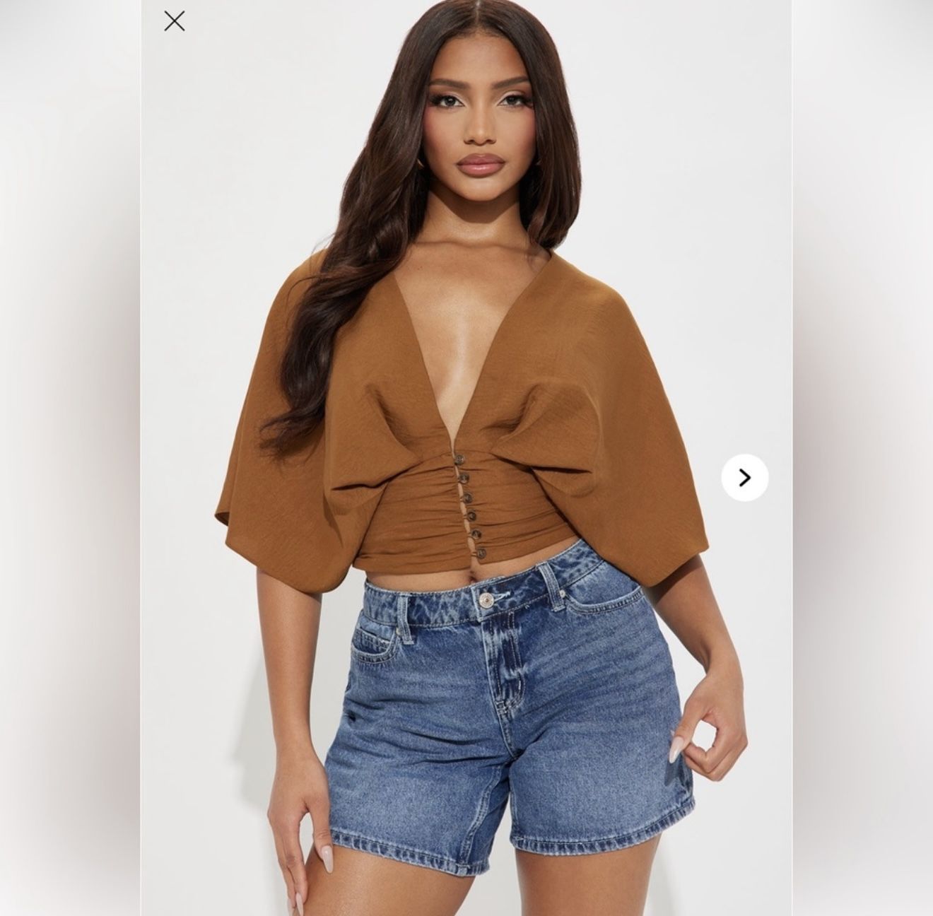 Blouse Top Short Sleeve Button Front Closure Non Stretch Self: 100% Polyester Lining: 100% Cotton