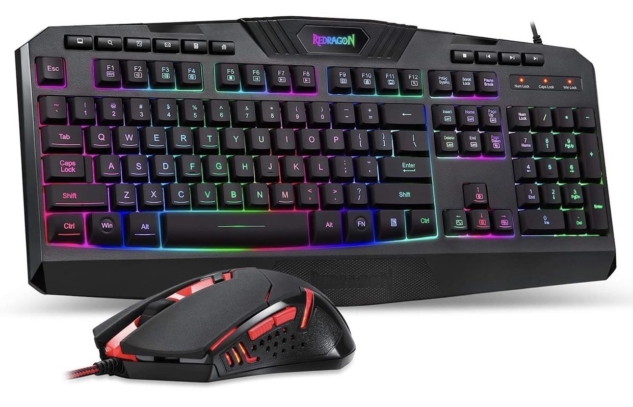 Redragon S101 Wired Gaming Keyboard and Mouse Combo RGB Backlit Gaming Keyboard with Multimedia Keys Wrist Rest and Red Backlit Gaming Mouse 3200 DPI for Windows PC Gamers (Black) PC GAMING KEYBOARD AND GAMING MOUSE COMBO: Includes Redragon RGB Backlit Computer Gaming Keyboard and RGB Backlit Gaming Mouse. ALL-IN-ONE PC GAMER VALUE KIT, Fantastic for Gamers (New Improved Version) RGB BACKLIT GAMING KEYBOARD; 7 different RGB Lighting modes & effects, 4 backlight brightness levels, adjustable breathing speed. The keycaps offering clear uniform backlighting WIN key can be disabled for gaming. The PC Gaming Keyboard has been ergonomically designed to be a superb typing tool for office work as well. The gaming Keyboard is built to withstand the average liquid spill. The integrated wrist rest gives you the comfort you need for marathon gaming sessions MULTI MEDIA & ANTI GHOSTING; The Gaming Keyboard has 25 conflict free (n-Key Rollover) 10 Dedicated Multimedia keys plus 12 additional FN+ Multimedia keys (Total 114 keys). Keys are quiet, designed for longevity, durability delivering precise tactile feedback. Comes with Full numeric keypad and a gold-plated corrosion free USB connector for a reliable connection and ultimate Gaming performance WIRED GAMING MOUSE; Ergonomic Redragon RED Backlit Gaming Mouse up to 3200 DPI (user adjustable 800/1600/2400/3200 DPI), 30G acceleration and Weight Tuning set. Total 6 Buttons of which 5 are programmable. The High-Precision Sensor delivers Pinpoint Accuracy while the Gaming Grade Micro Switches ensure longevity, greater durability and extreme responsiveness, giving you an even greater edge over your competition PC GAMING KEYBOARD AND GAMING MOUSE COMPATIBILITY: Windows 10, Windows 8, Windows 7, Windows Vista, or Windows XP, Limited Mac OS keyboard support. Works well with all major Computers Brands and Gaming PCs.
