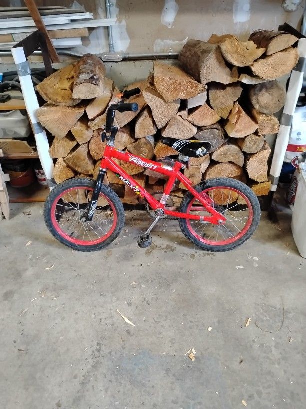 For sale is a 16 inch kids bike. I learned how to ride and wheely on this guy, and it wheelies well! This was my first bike for $20. So it's been used well over a thousand times. It's a sturdy bike, and has shiny red paint, and has always been kept inside. I still maintain it and clean it and do whatever it needs to look nice. It's a great bike for your kiddo and wants to be ridden. So why don't you throw me an offer and make your kid happy? ( He'll be happy)