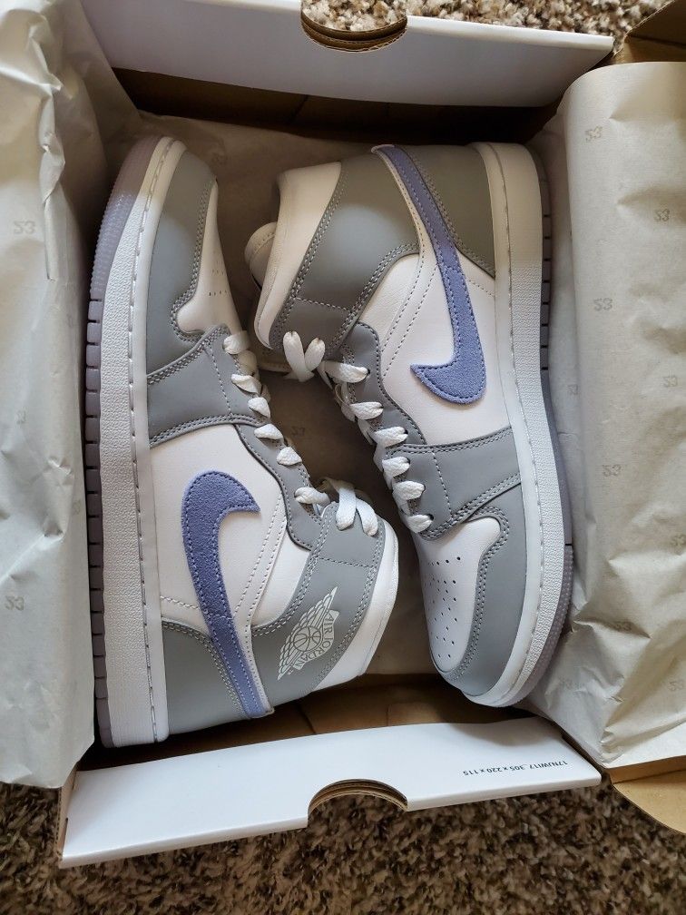 Brand New Air Jordan 1 Mid White/Wolf Grey/Aluminum Women's Size 8.5