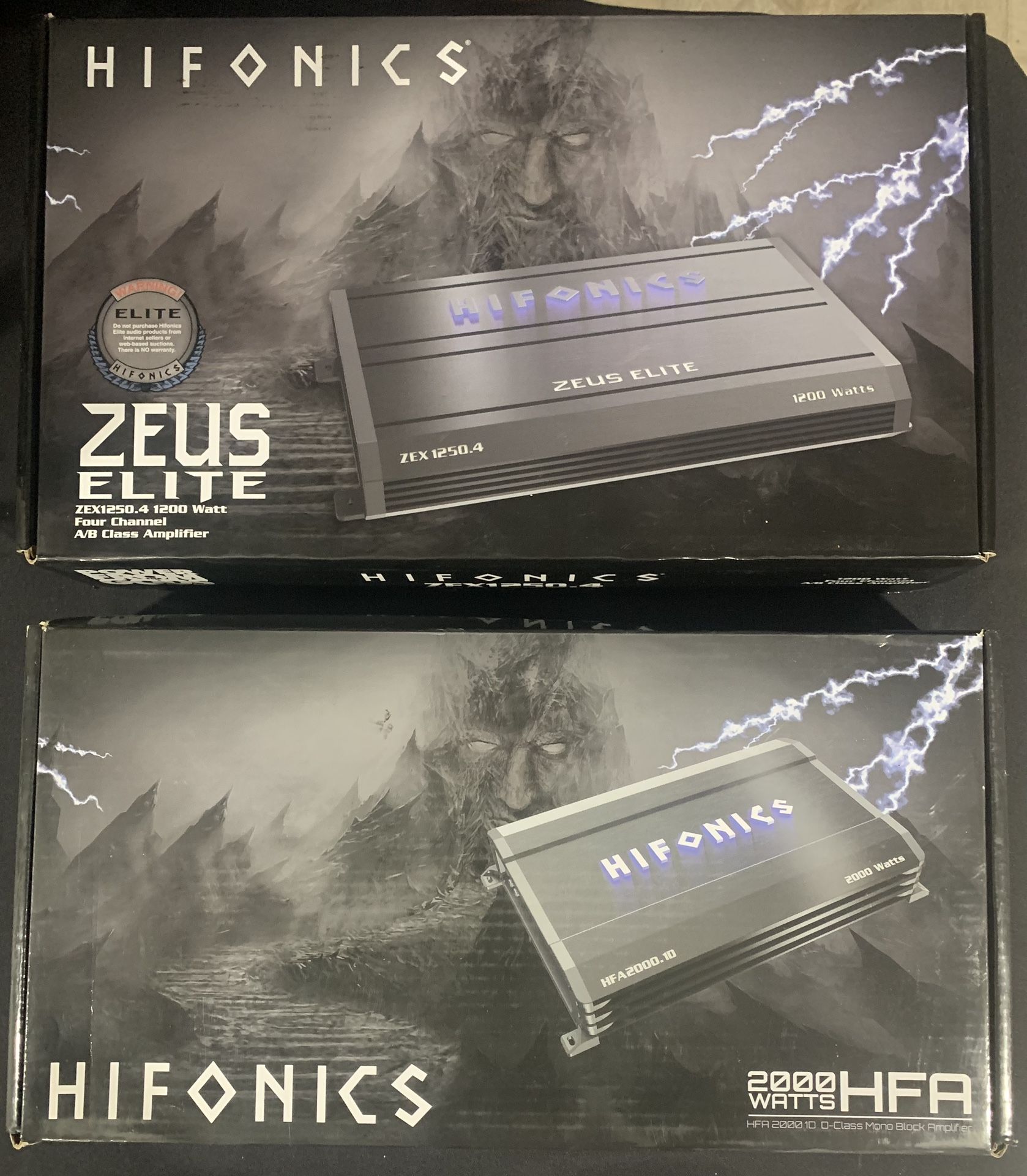 Hifonics Amps (LED Glow) HFA 2000.1D (2000W D-Class Mono Block Amp)- $250 ZEX1250.4 (1200W 4-Channel Amp)-$150