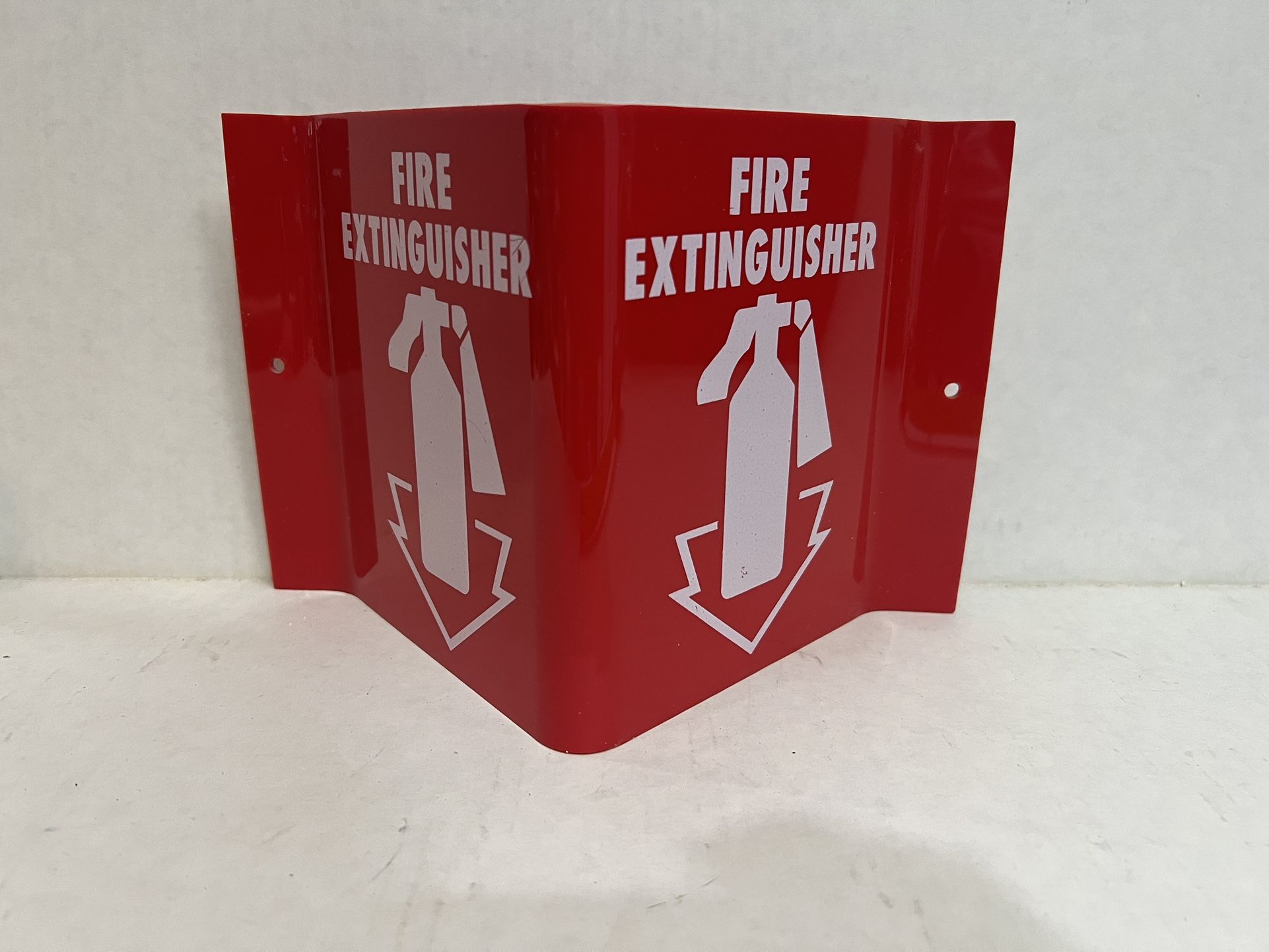 9x6x4" "FIRE EXTINGUISHER" V-Sign White on Red Acrylic Standard Safety