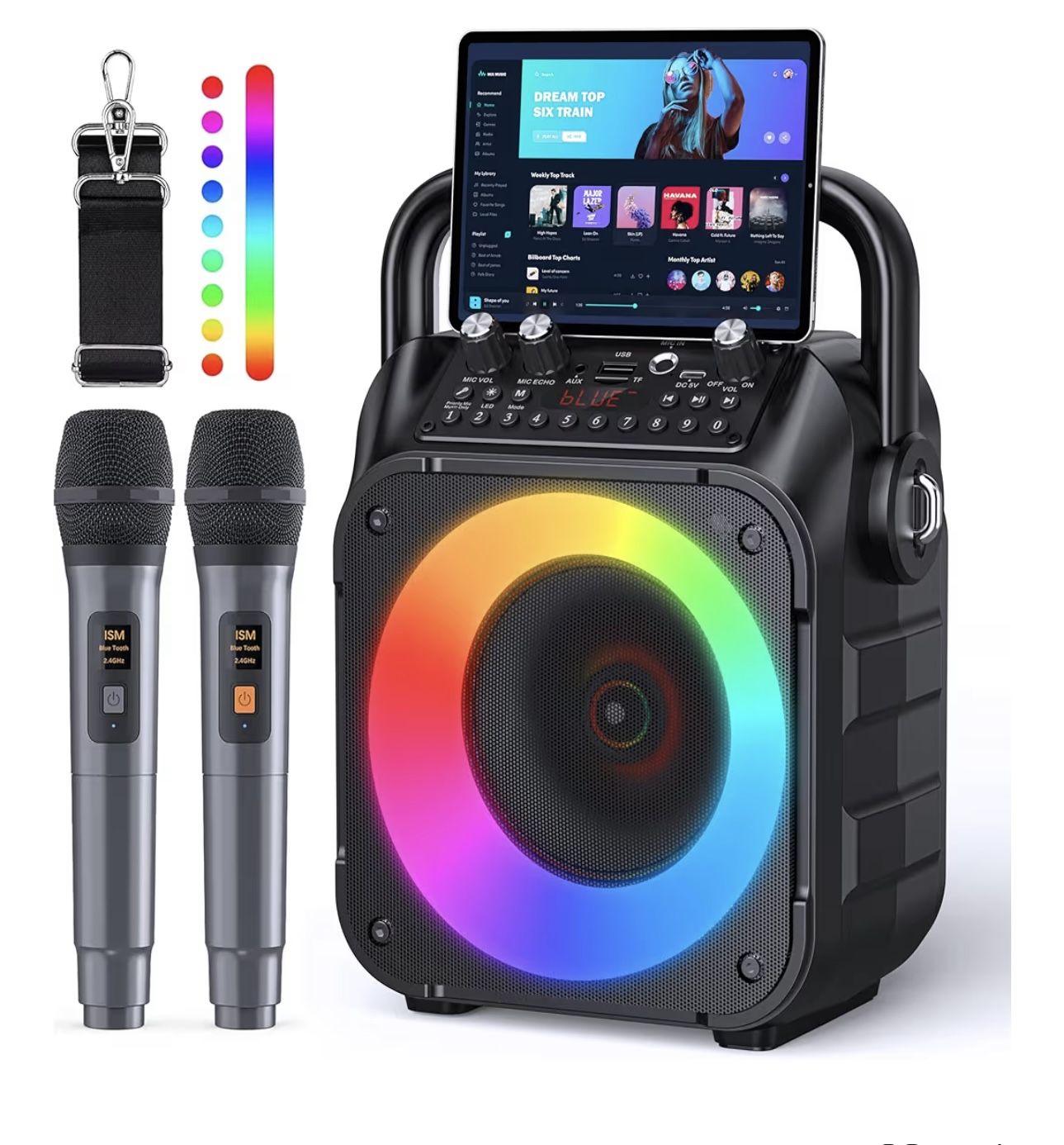 NEW- Karaoke Machine, Portable Bluetooth Speaker with 2 Wireless Microphones