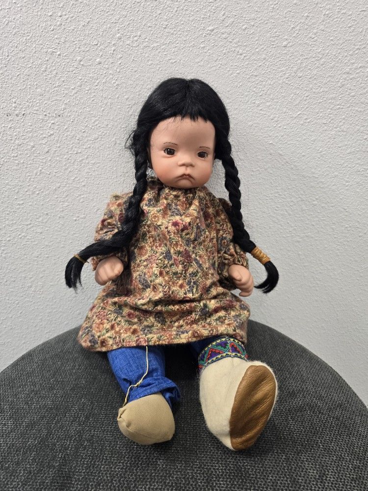 The head and hands look like plastic, but when you knock them against each other, you realize that this is porcelain. The body is made of heavy balls inside. All defects are shown in the photo. In a good condition. From smoke free home
