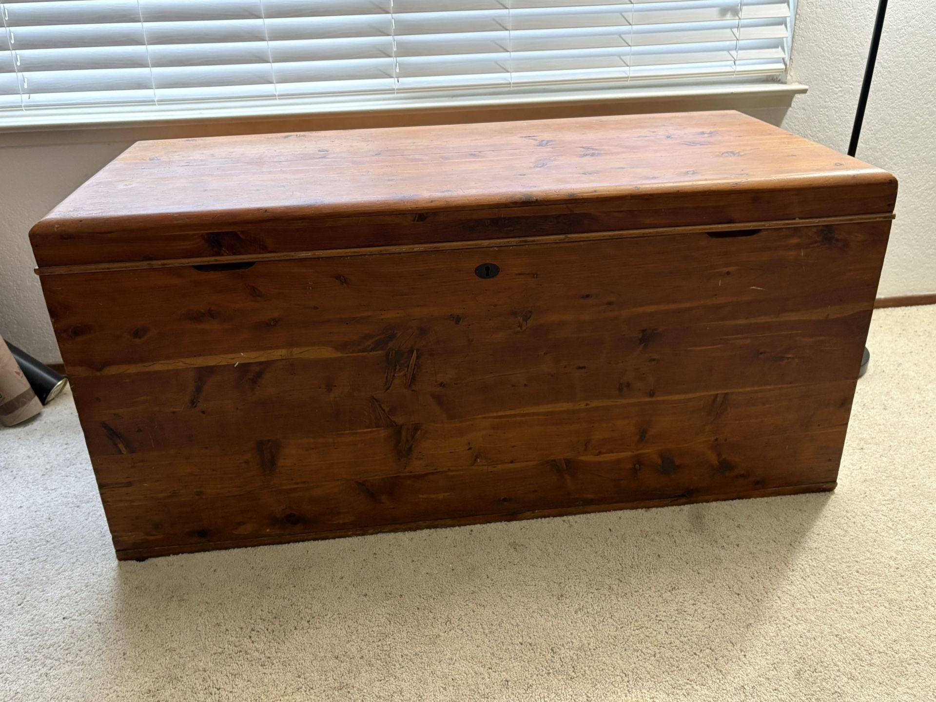 Genuine cedar chest in good condition. Measures 48” long, 24” deep and 24” high. Great for storing sweaters and wool items.