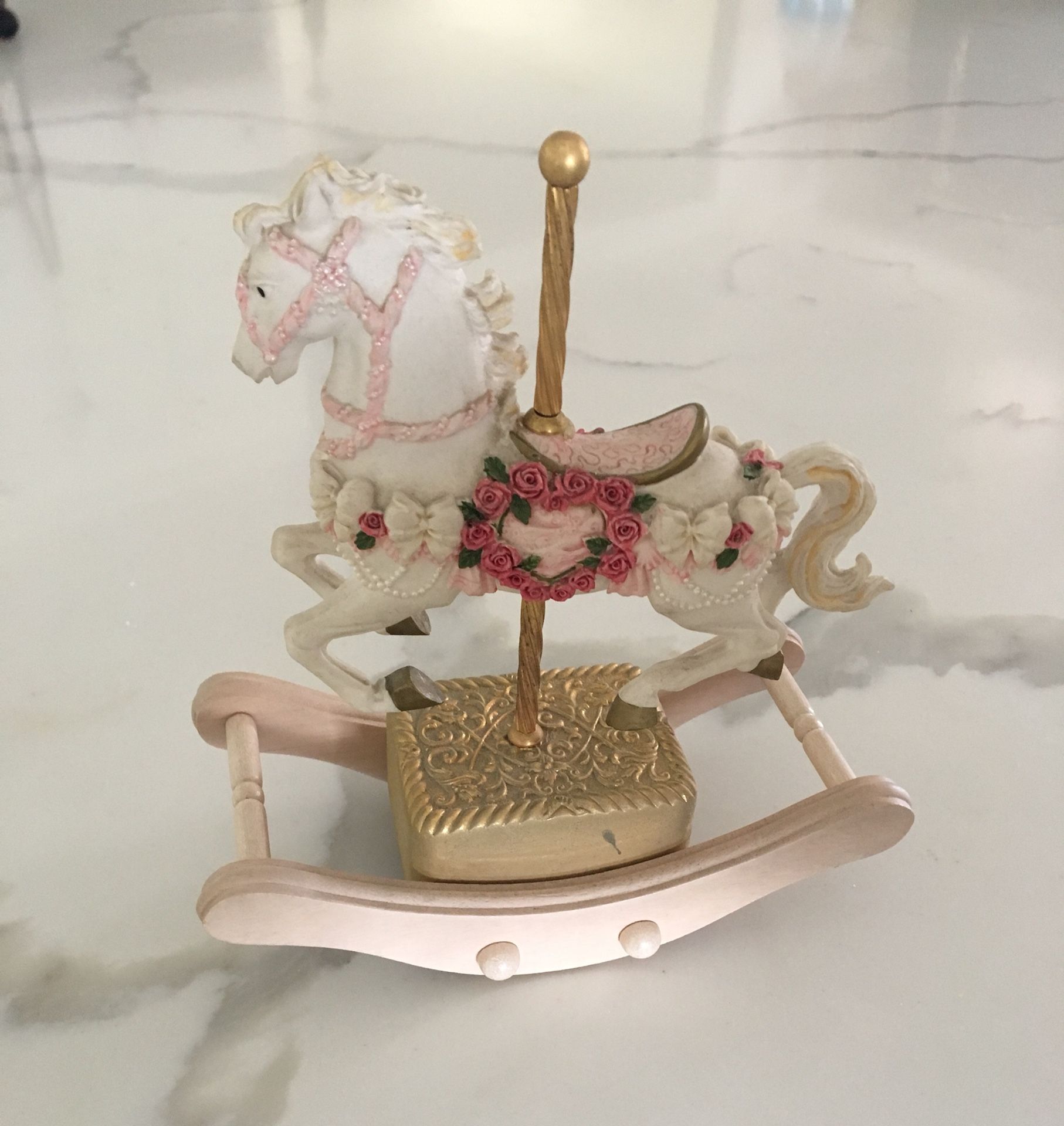 Musical horse. Plays music and rocks back and forth. Beautiful piece to add to anyone’s collection. Message for more info or to see a video of it functioning.