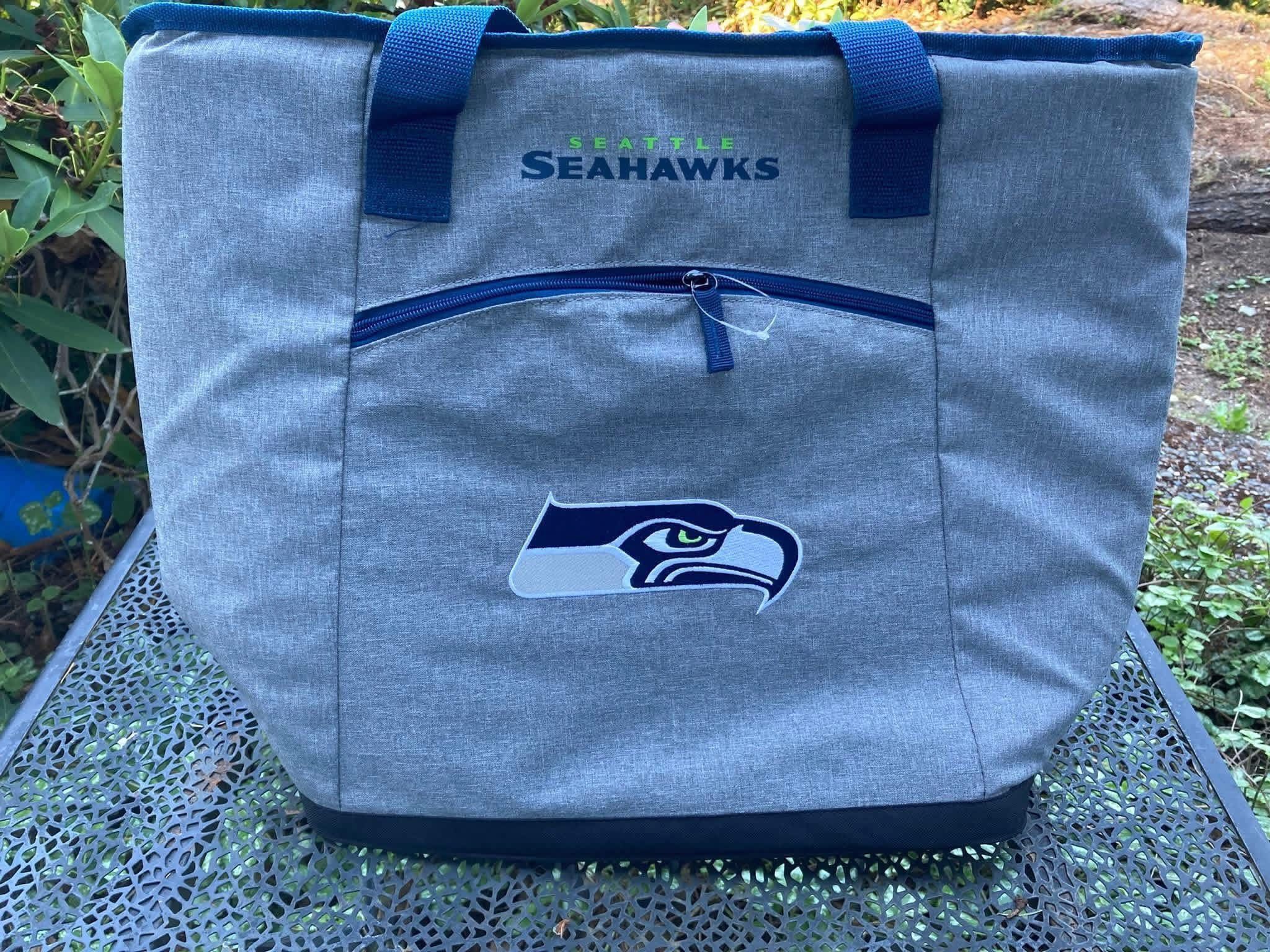 Says it holds 30 cans plus ice. I have never used this. Approximately 15” Tall x 20” Wide. TJMaxx (see 2 included photos) sold this bag for $19.99 in December 2025. Be Seahawks Fan ready! Check out my Seahawks chair and jacket!