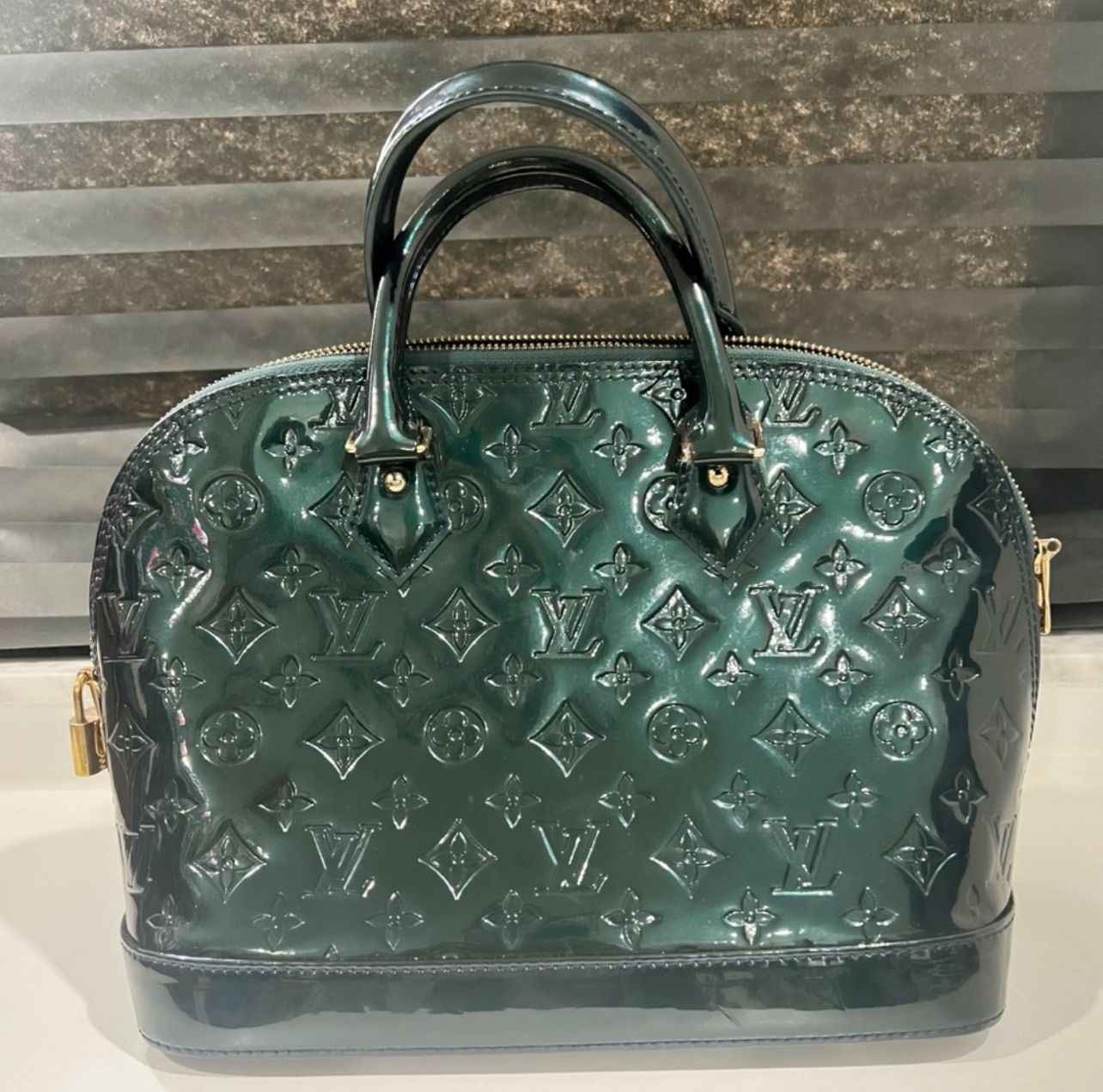 Very cute and easy to wear Louis Vuitton Alma Handbag Monogram Vernis PM in green. Great for everyday or special occasion