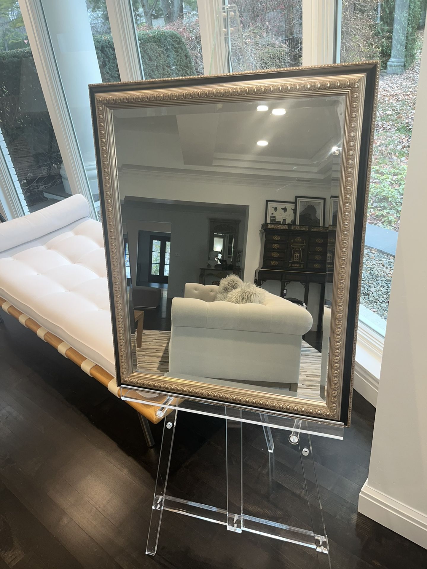 Beautiful Magana Gallery ART Custom Framed Mirror. Elegantly designed with detailed gold embroidery. Originally $400 value. Dimension: 25w x 32H. Bloomfield Sale. Pick up offsite location location. Auburn hills. Please check out my other offers thank you!