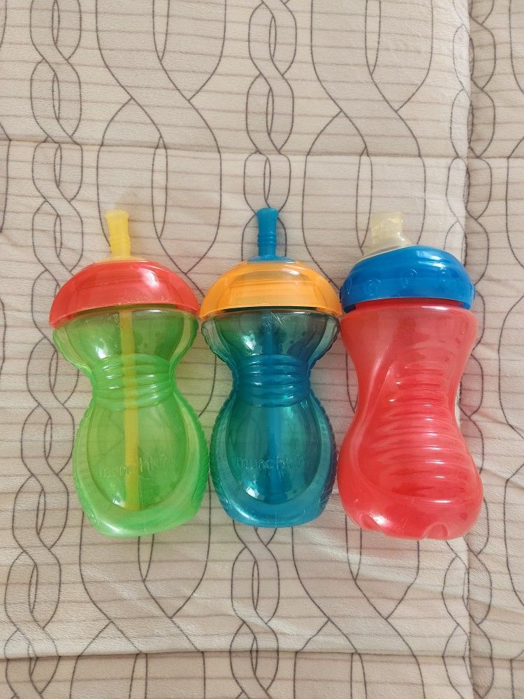 ** Firm Price ** 3 sippy cups. Two are spill resistant, the red one has a large opening as seen in pictures.