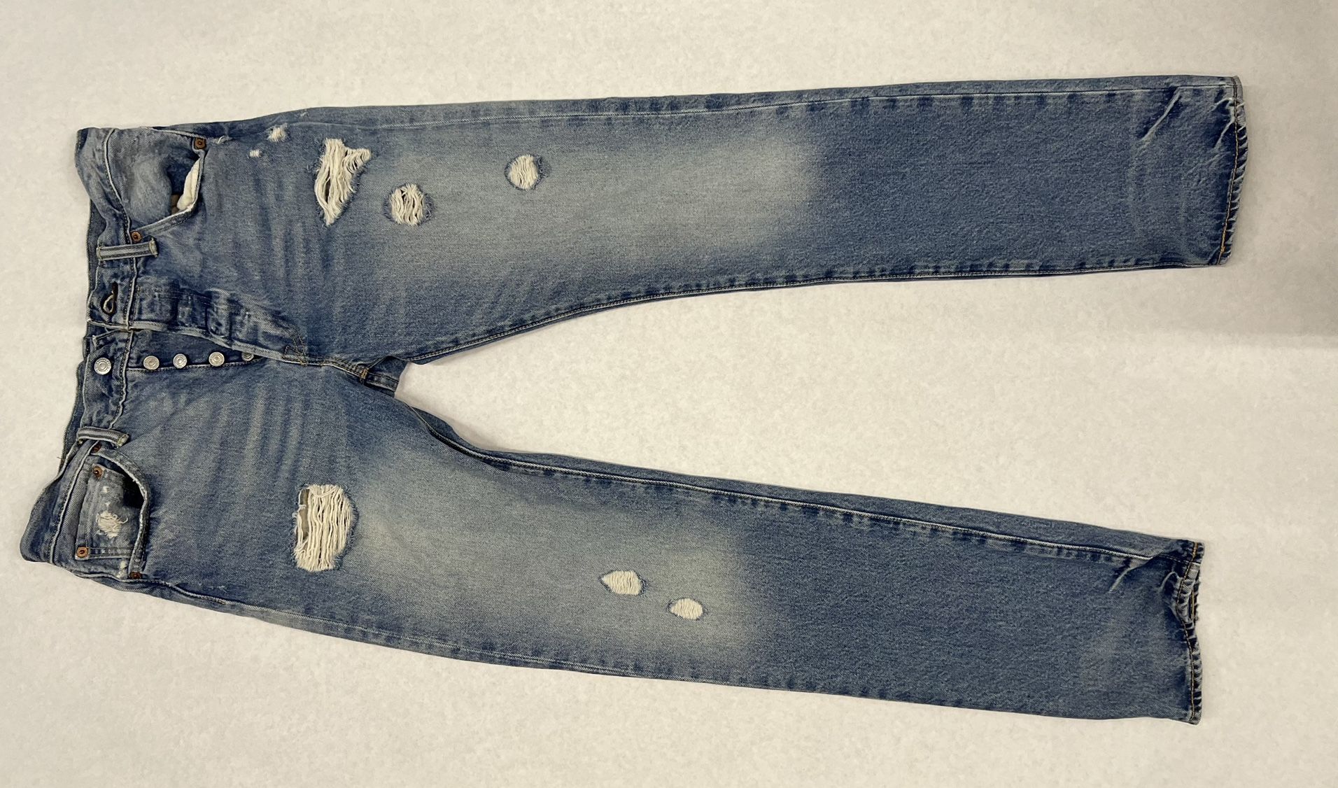 Levi’s 501 Button Fly Distressed Denim Jeans 33 X 34