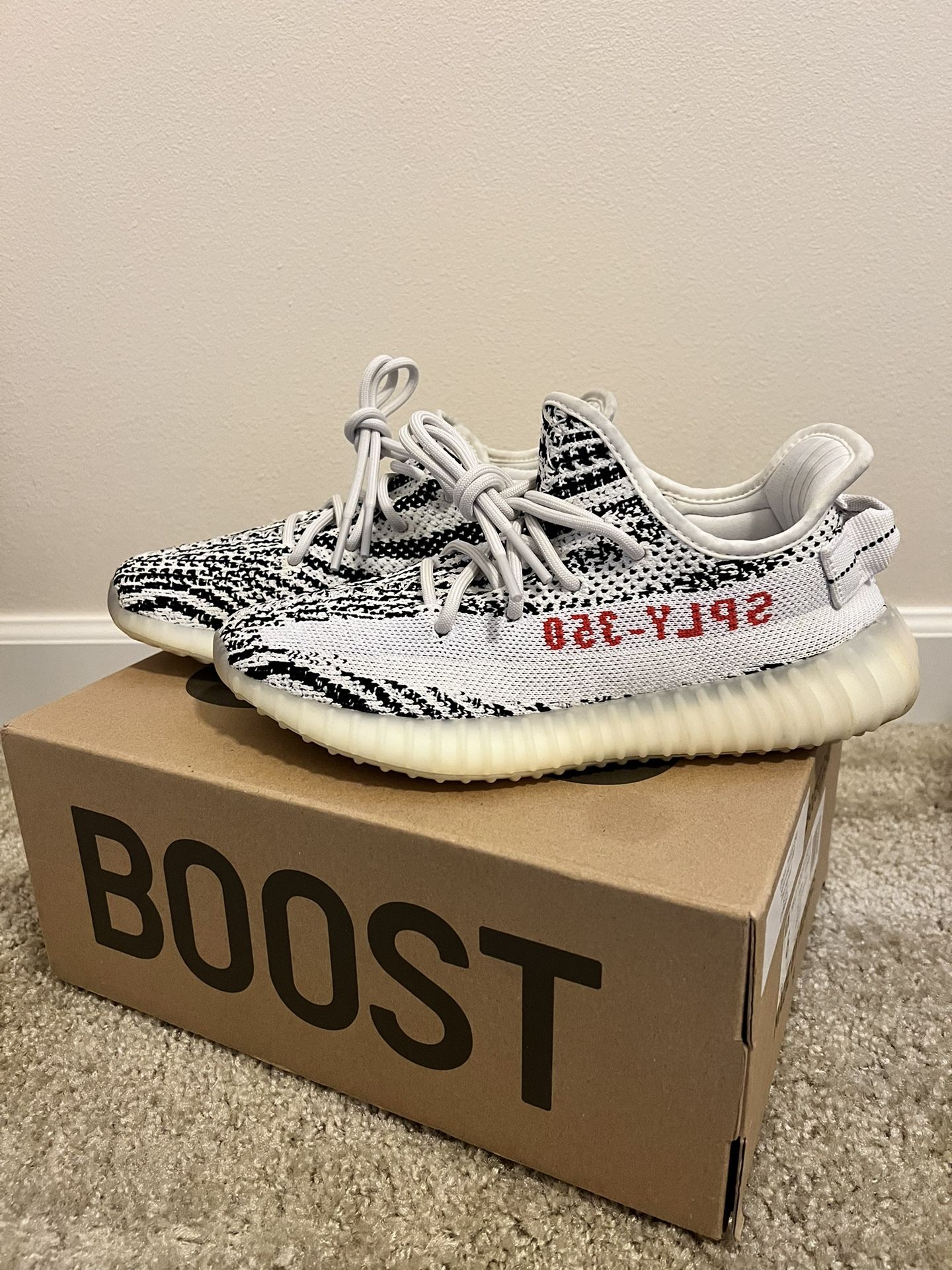 Yeezy Boost 350 V2 “Zebra”. Lightly used, can only tell that they have been worn because of soles. Size 6 Men’s, Size 7.5 Women’s. Looking to sell for $280 OBO.