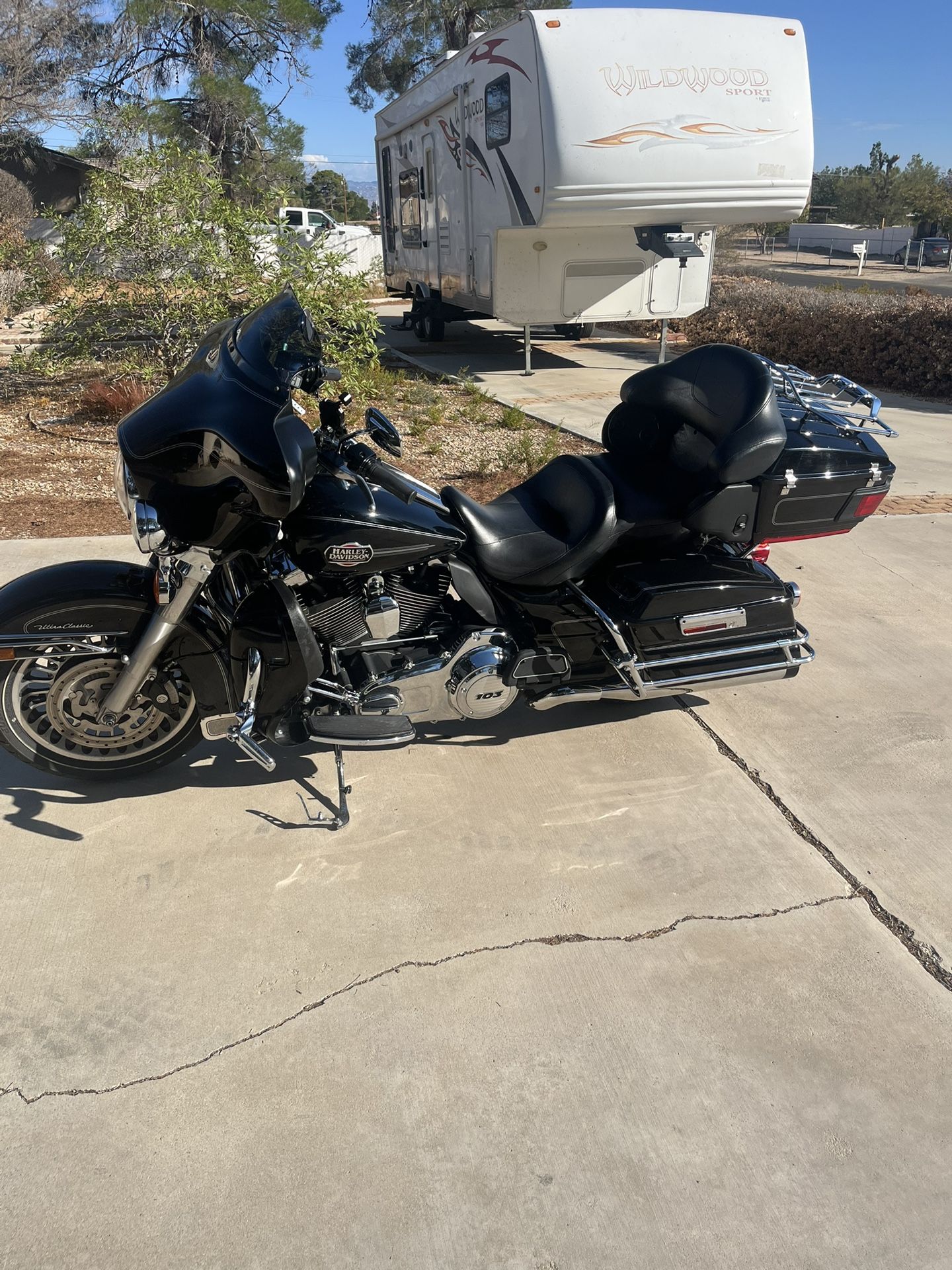 Very nice Full Dress. Comes with HD baggage for the tour pack and the saddle bags. Rinehart Pipes, not to terribly loud. Comes with factory seat and backrest and an HD low seat for shorter riders. Rear has a lowering kit, can adjust ride height. Comes with 4 windscreens, 2 clockwerks one tall, and one shorty. New Dunlop Tires within last 5000 miles. Highway pegs. Never been down, clean title in hand.