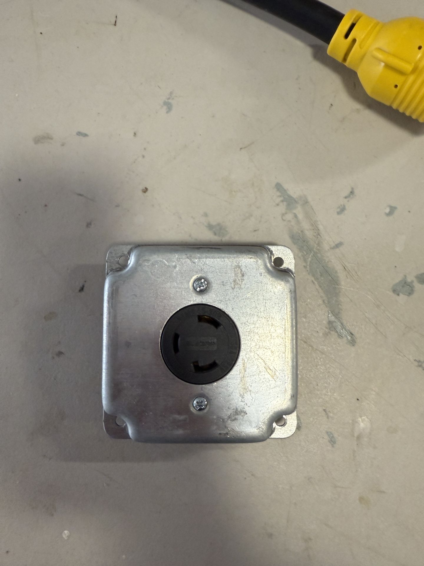 NEMA L5-30R Locking Receptacle with 4 square RS cover Plate. Used briefly at off-grid cabin for solar/generator power input. Lots of life left. $5.