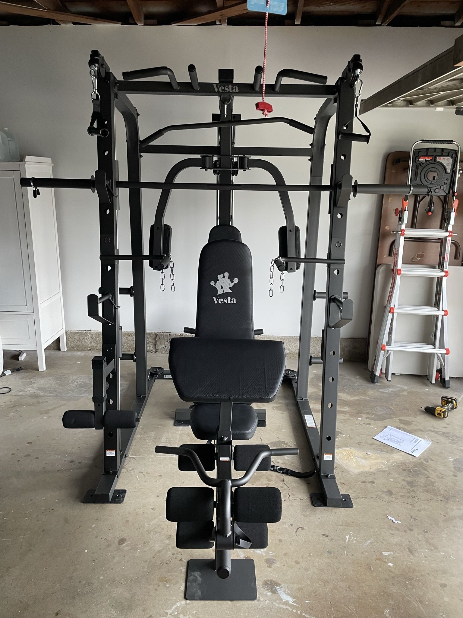 Vesta Fitness Smith Machine 1001 w/Bench Attachment | 245lb Cast Iron Olympic Weights | 7ft Olympic Bar | Fitness | Gym Equipment | FREE DELIVERY 🚚