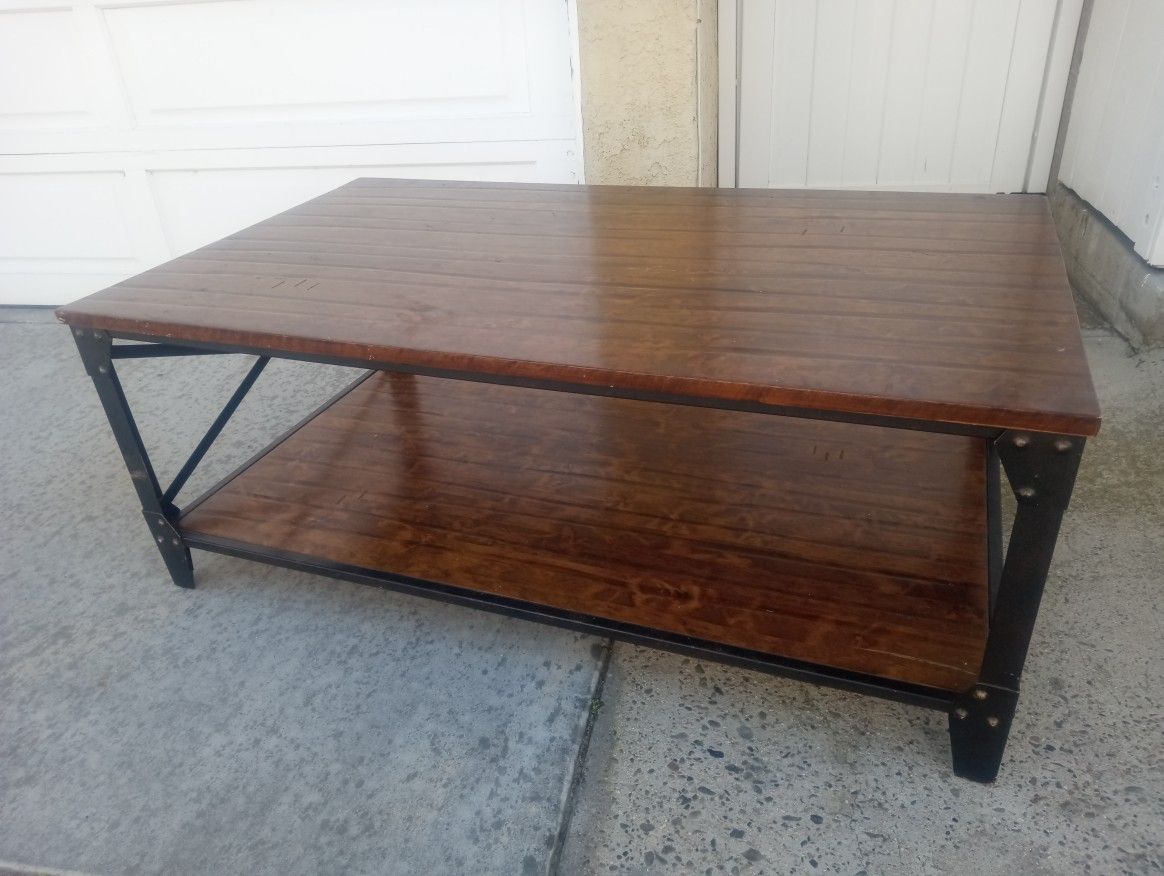 Modern Industrial Solid Wood Coffee Table W/ Open Lower Shelf For Decoration Like New Very Nice