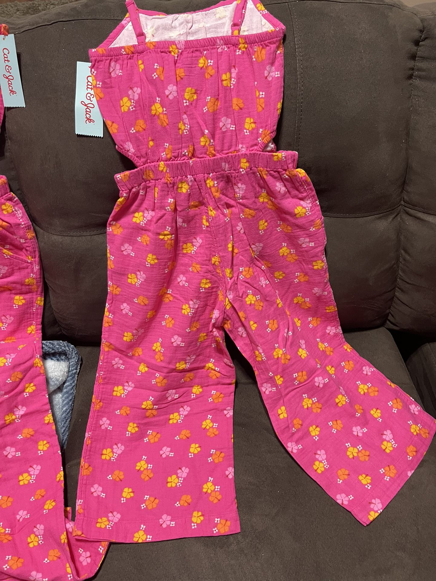 CAT&JACK Summer Sleeveless Jumpsuit Girls Floral Woven Cotton Wide Leg Pink Size ( s-Xs-M-L-Xl