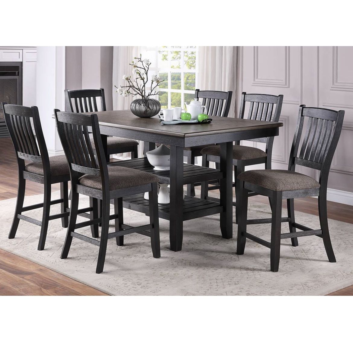 7 Piece Counter Height Dining Set With Storage Shelves Brand New In Box Firm Price $740 Financing Available