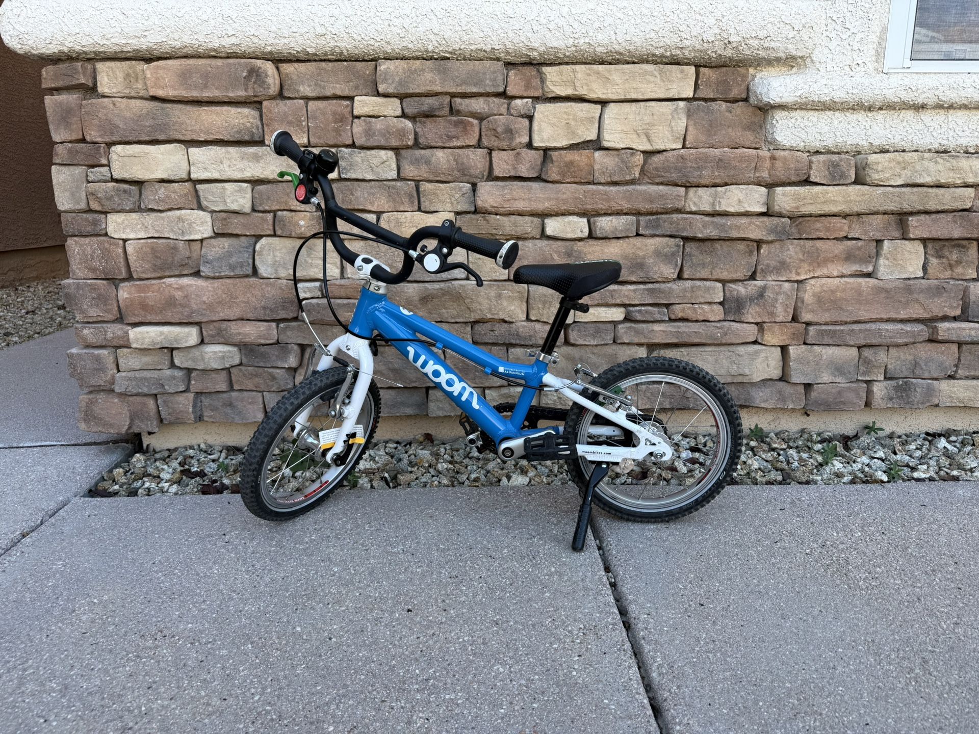 Light weight aluminum toddler kids bike in the color blue great for learning to pedal 14” wheels with adjustable seat handle brakes bell and kickstand. Used still in perfect condition pickup near blue diamond and durango cash only exact change please.
