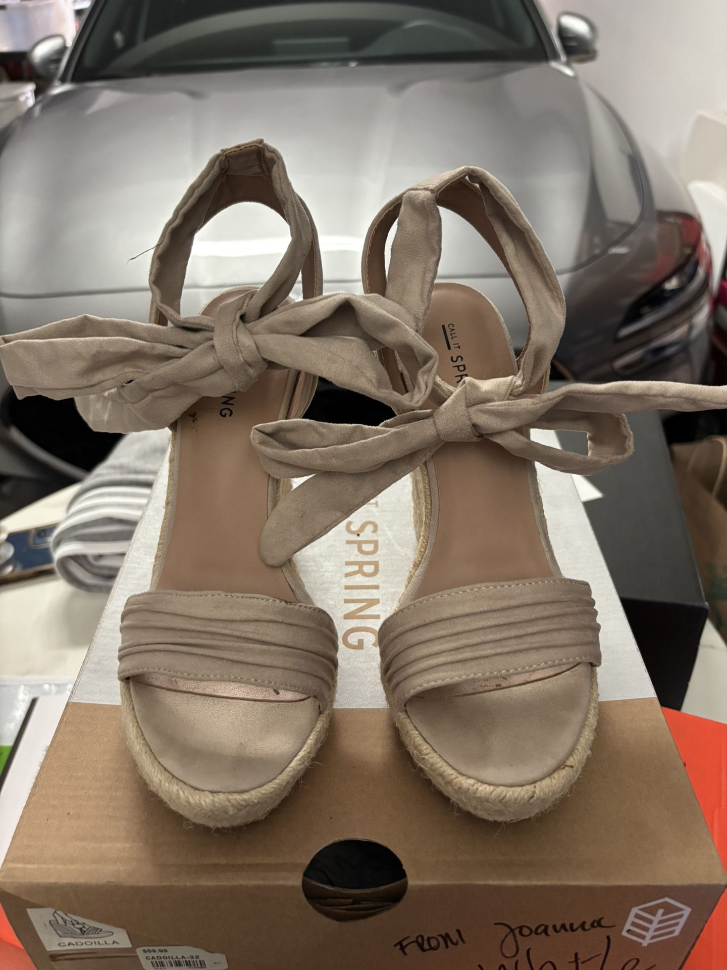 Beige wedges from call it spring, size 6 1/2. The top ankle is a tie so you can tie it in any design you want. pick up only.