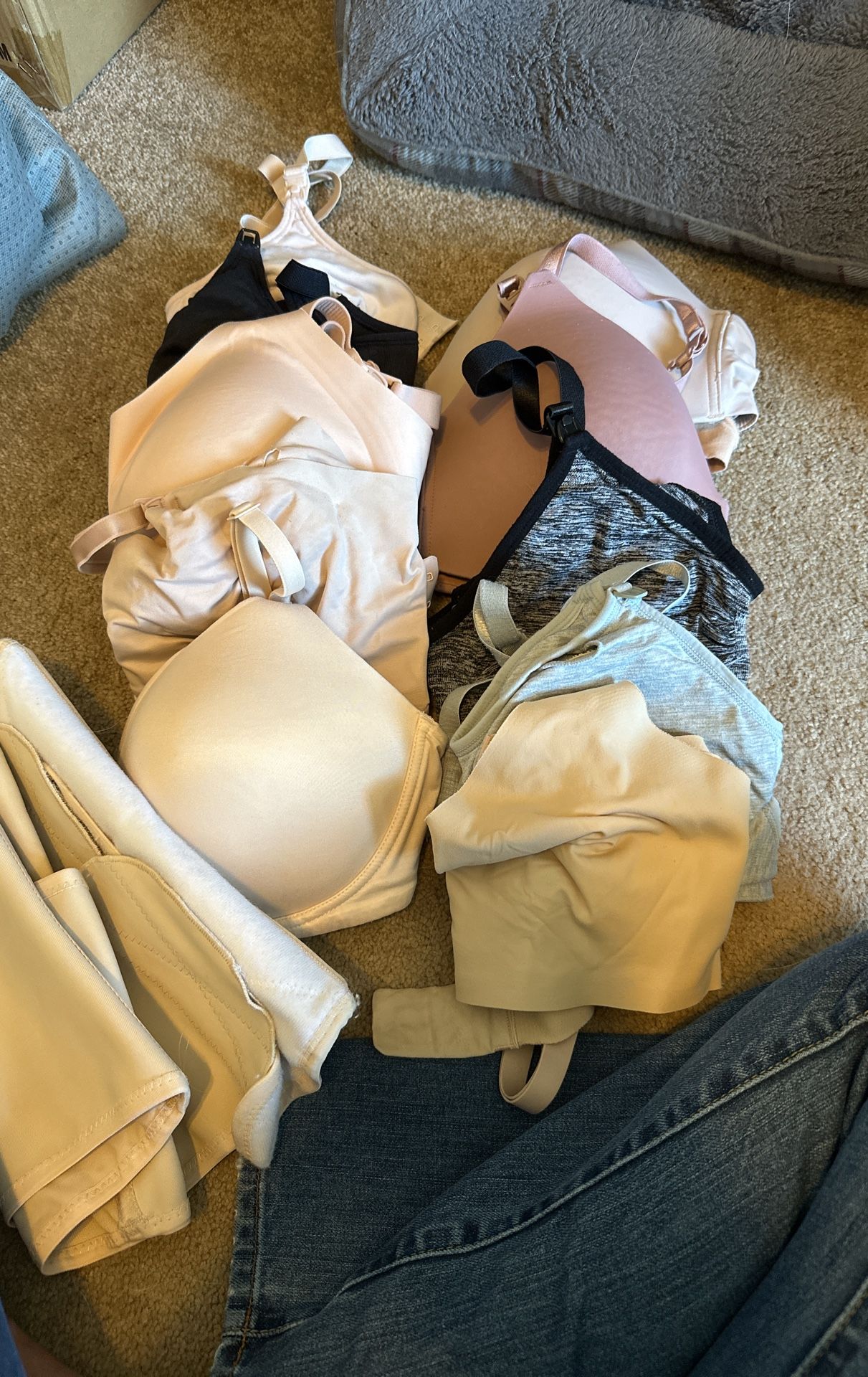 Size small and medium. Various brands all in very good condition. 10 bras and a belly bandit