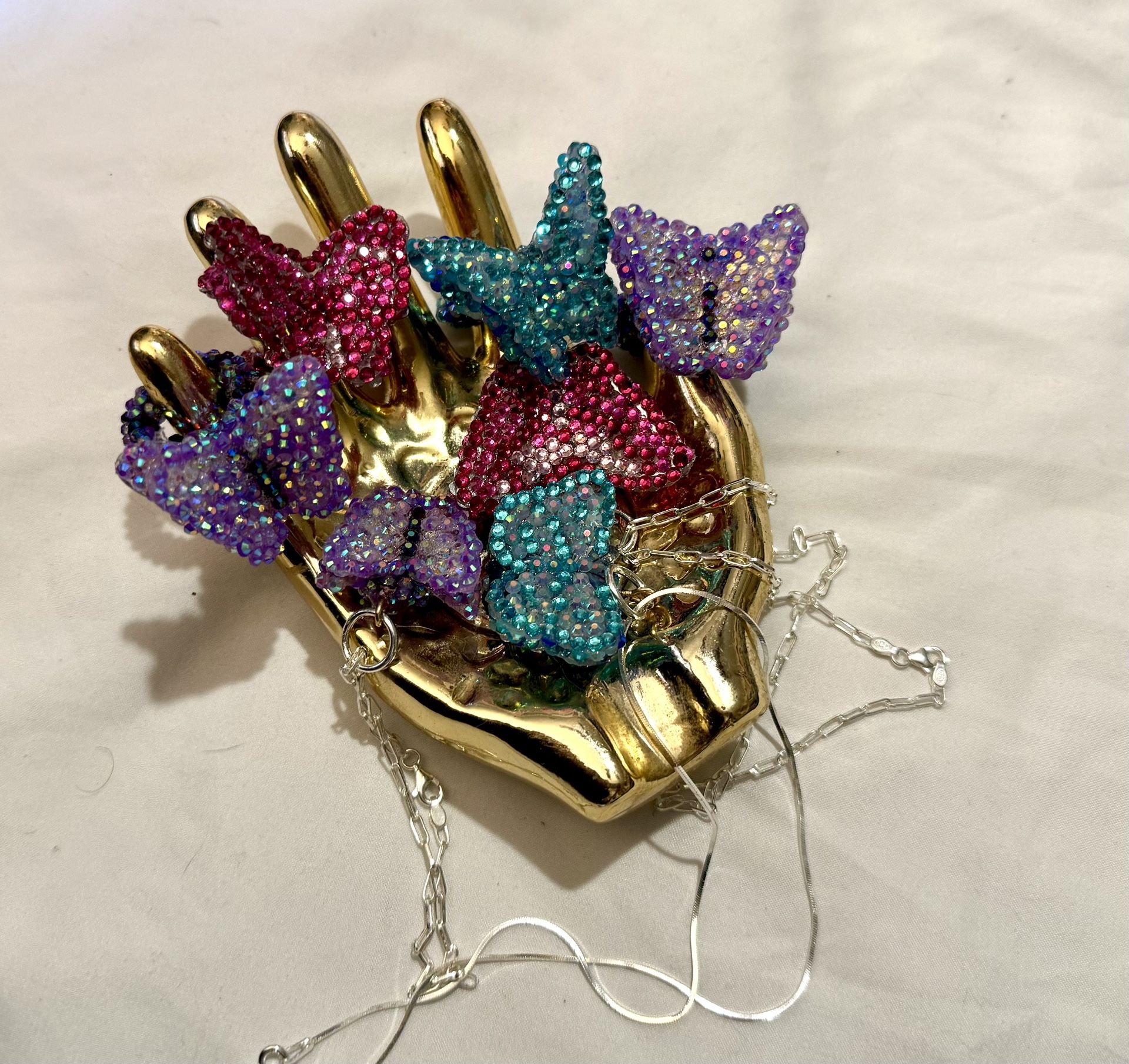Limited custom handmade crystal statement butterfly jewelry Rings $14 Pendants $14 Pendants with sterling necklace $25 Rings are various sizes, message for info Ships from az Shipping $6 Discount for multiples