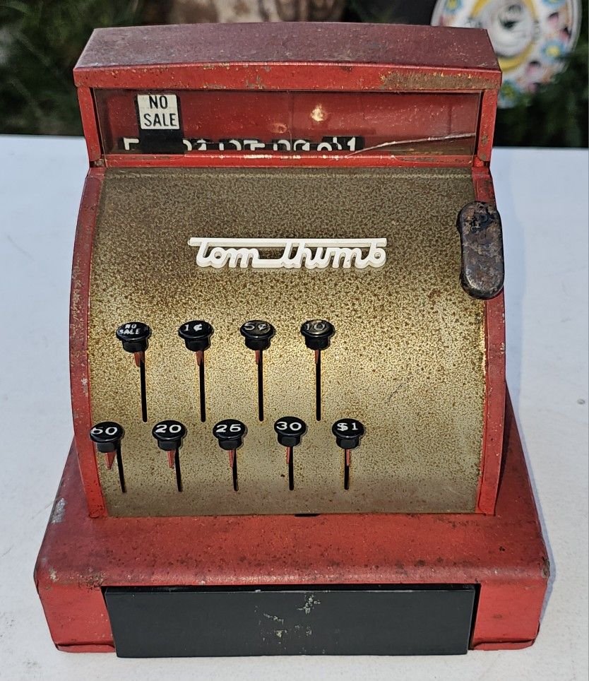 I have for sale an Original Vintage 1950’s TOM THUMB Metal Toy Cash Register!!! See photos for more details. Works great, very fun. Nice collectible. I'm asking for only $25 or best offer. Thanks.