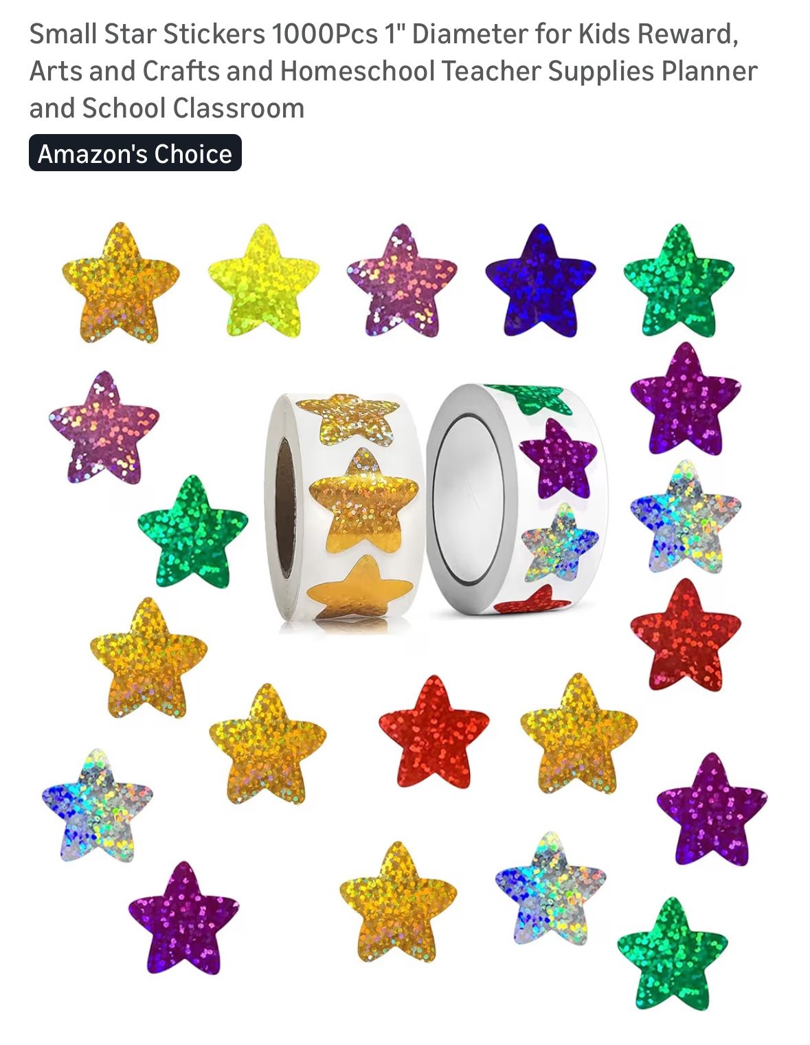 Small Star Stickers 1000Pcs 1" Diameter for Kids Reward, Arts and Crafts and Homeschool Teacher Supplies Planner and School Classroom