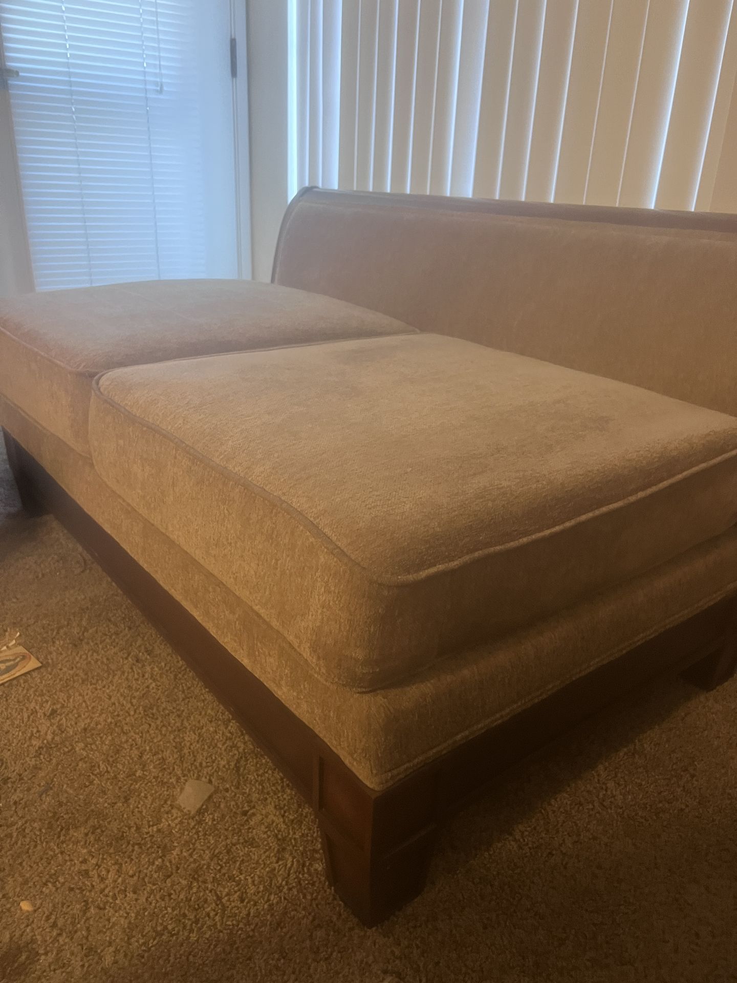 2 set couch the big one needs the cushions probably redone. The small one it good maybe switch the cushions to the big one. But the wood frame of couch good condition and nice. Get it while its gone