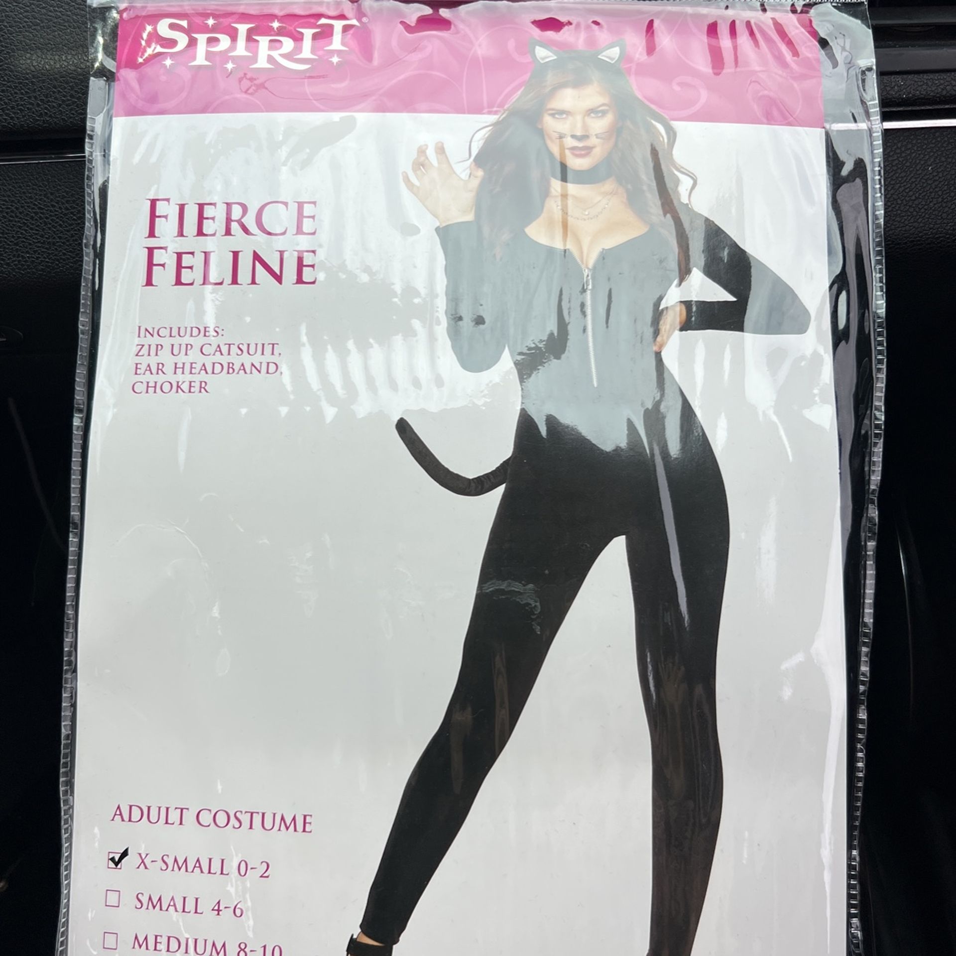 Xtra small 0-2 women cat costume Comes with everything on front (zip up , headband, choker) Never used
