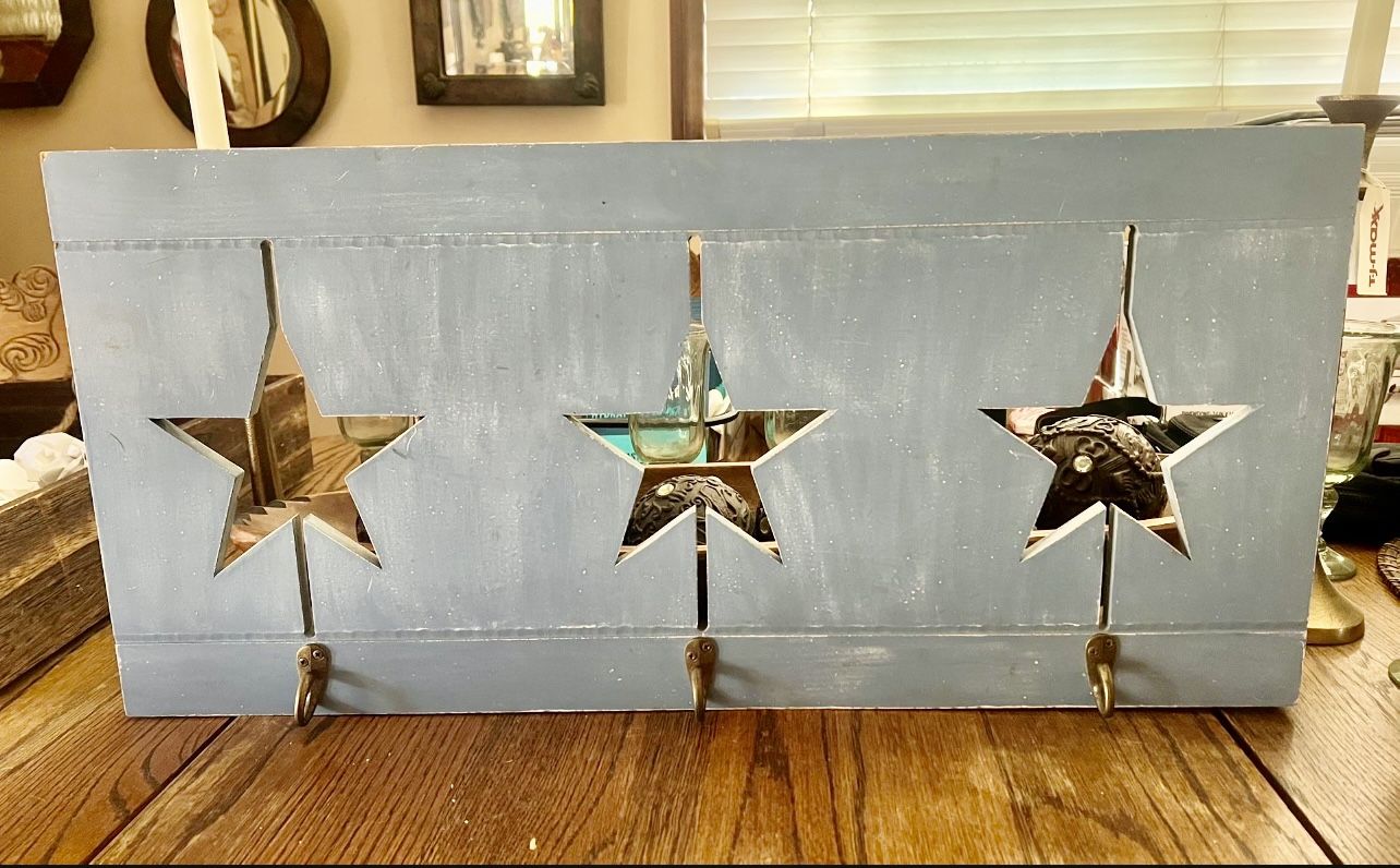 NEW 28” x 13 1/2” Americana wooden wall hanging decor with 3 hooks. Check out my other listings.