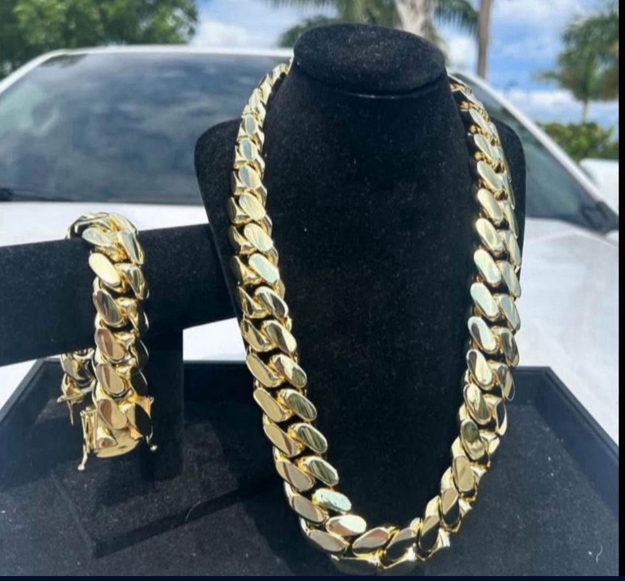 Set Chain & Bracelet 20mm Miami Cuban Link Yellow Gold Plated Chain Necklace 18k & 14k 22inch 24inch 20inch 18inch 7inch 8inch