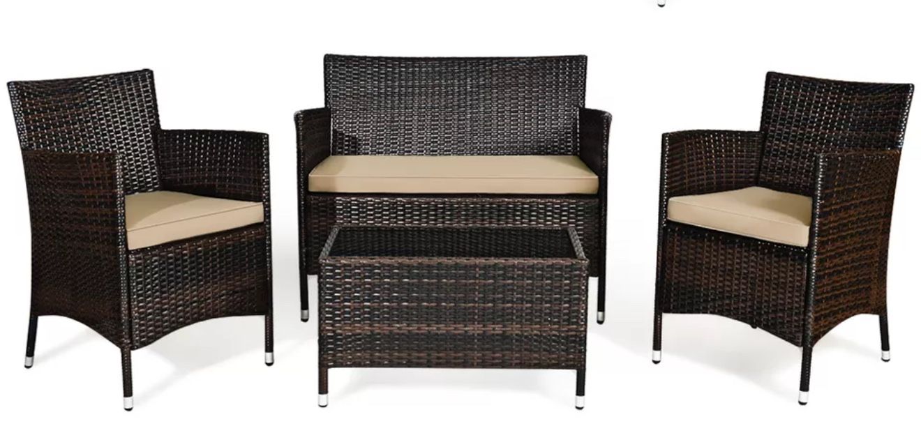 Brand new 4PCS Outdoor Patio Rattan Furniture Set Cushioned Sofa Coffee Table Gard