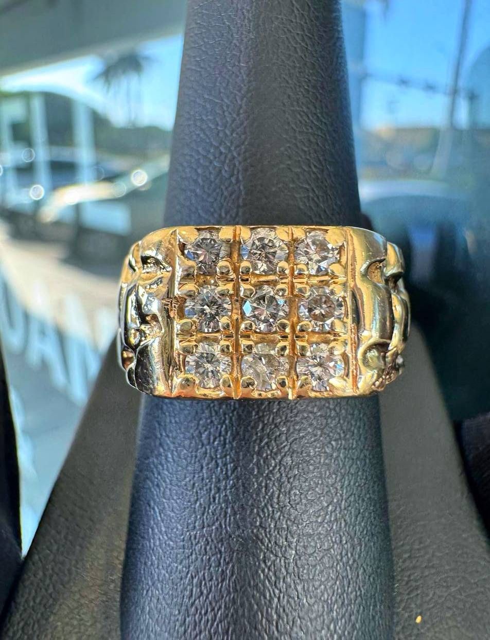 This gorgeous nugget fashion ring is made of 14k solid yellow gold with 9 natural diamonds round shape. The total weight of stones is 0.75 carats. The ring has a beautiful unique design and will decorate any outfit. Size: 9. Total weight: 10 grams. It is very beautiful and nice accessory. Perfect gift! β€οΈππ We buy Rolex and Audemars, patek . Do layaway in Vipawn Boca Raton π₯ππΈ