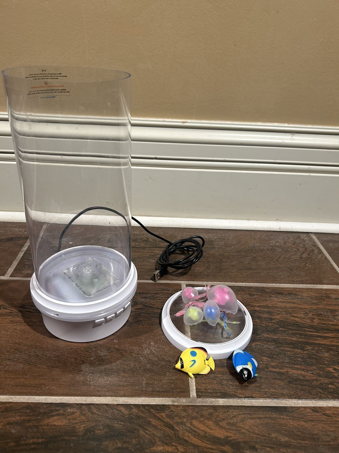 Color changing or single color lamp with 3 small jellyfish, one big jellyfish, and 2 fishes