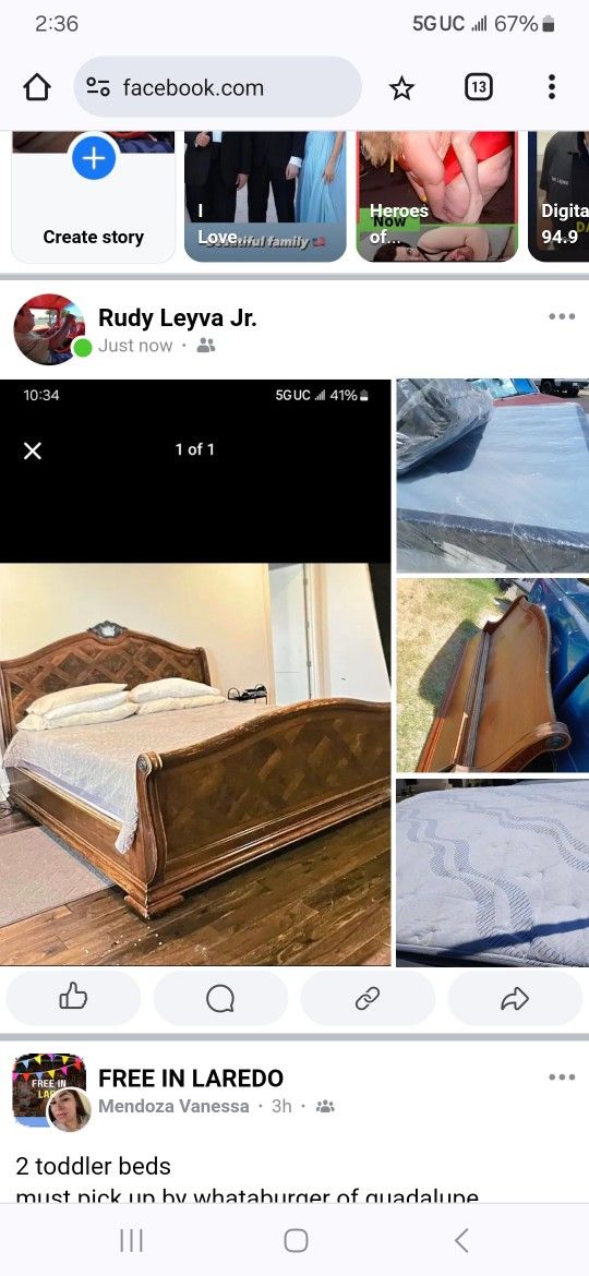 COMPLETE KING SIZE BED WITH PILLOWTOP MATTRESS ......ASKING $430 DELIVERED TO YOUR HOUSE OR IF YOU CAN PICK UP....$410