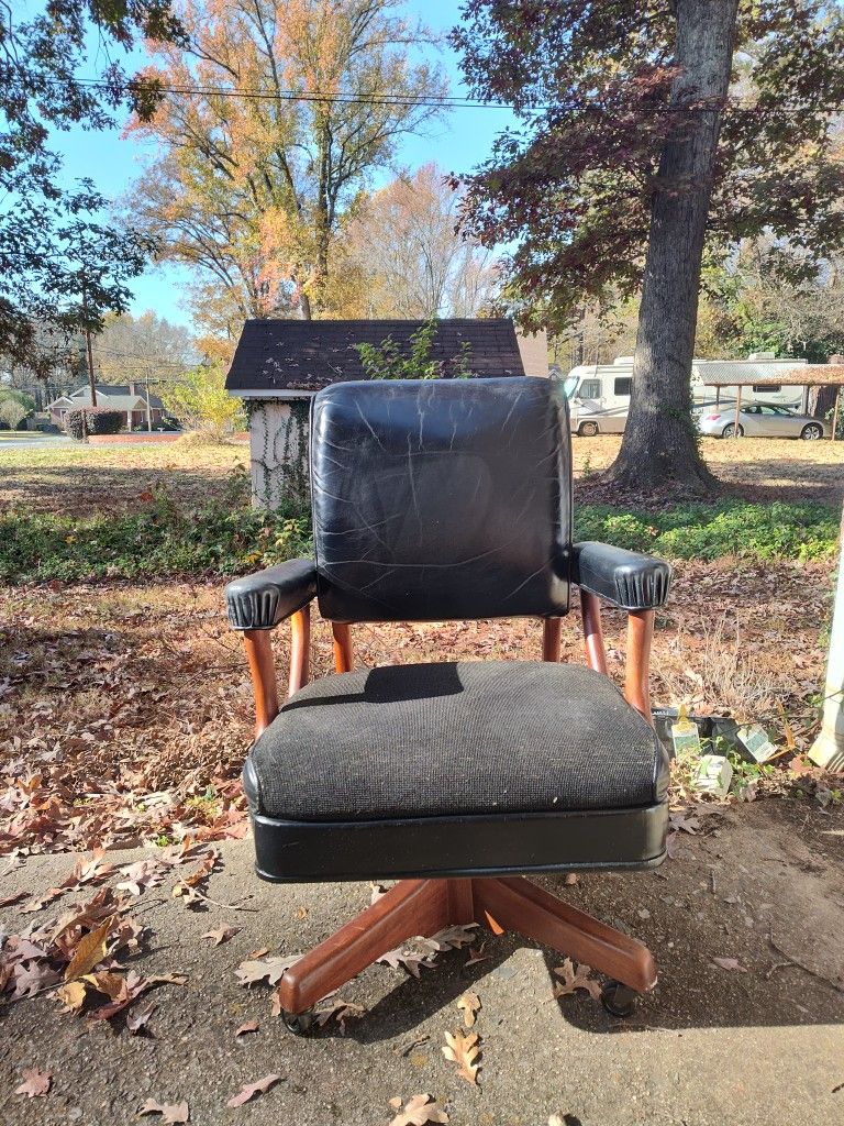 Leather office chair rocks, swivels and rolls. Asking $40