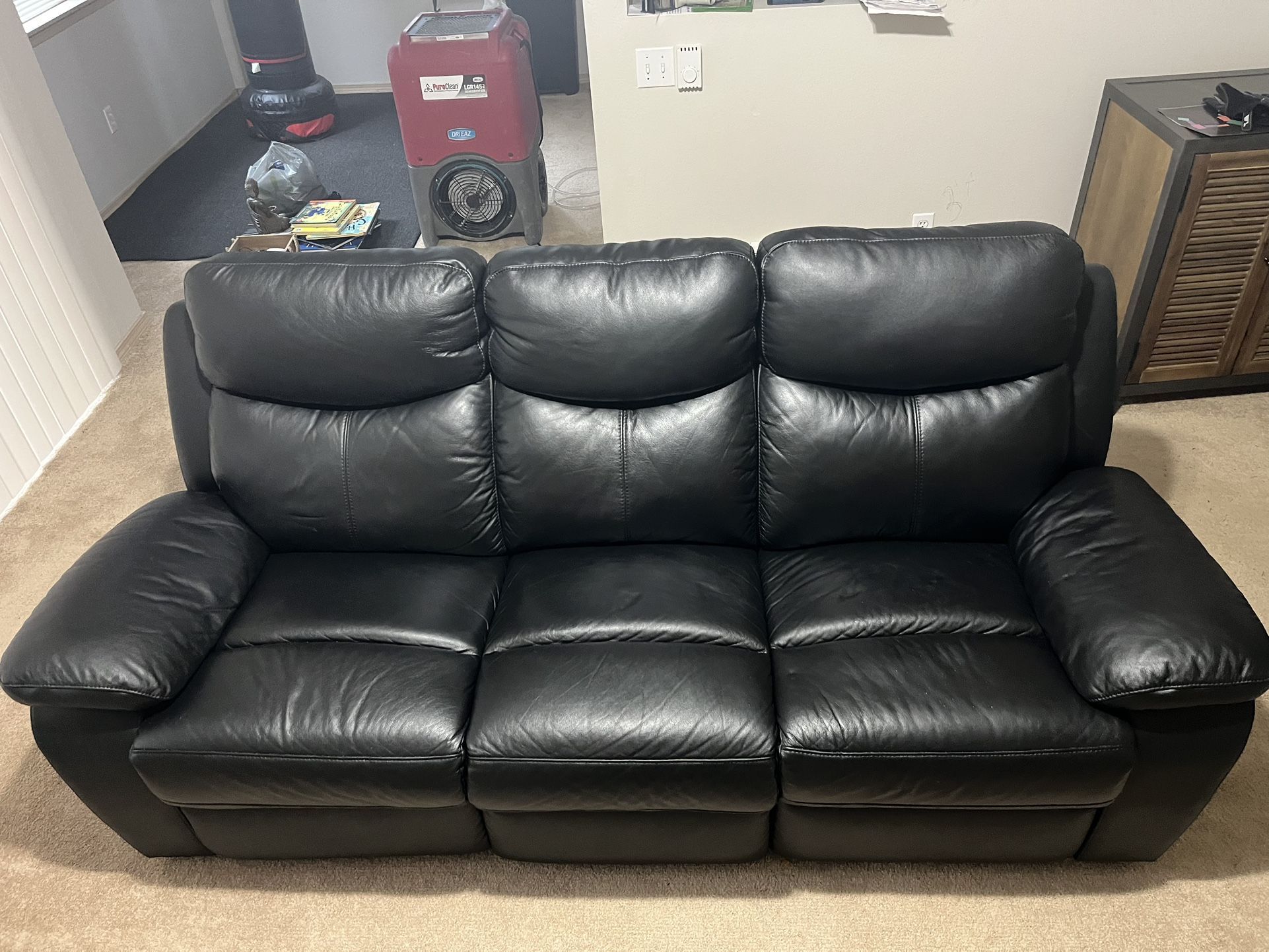 Genuine Leather couch recliner sofa black like new